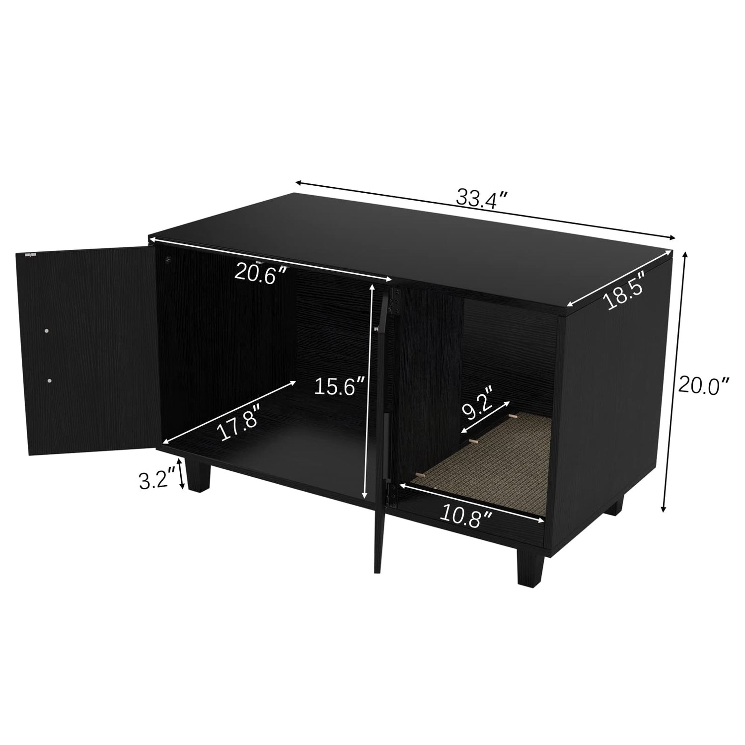 GDLF Modern Wood Pet Crate Cat Washroom Hidden Litter Box Enclosure Furniture House as Table Nightstand with Scratch Pad,Stackable (Black)