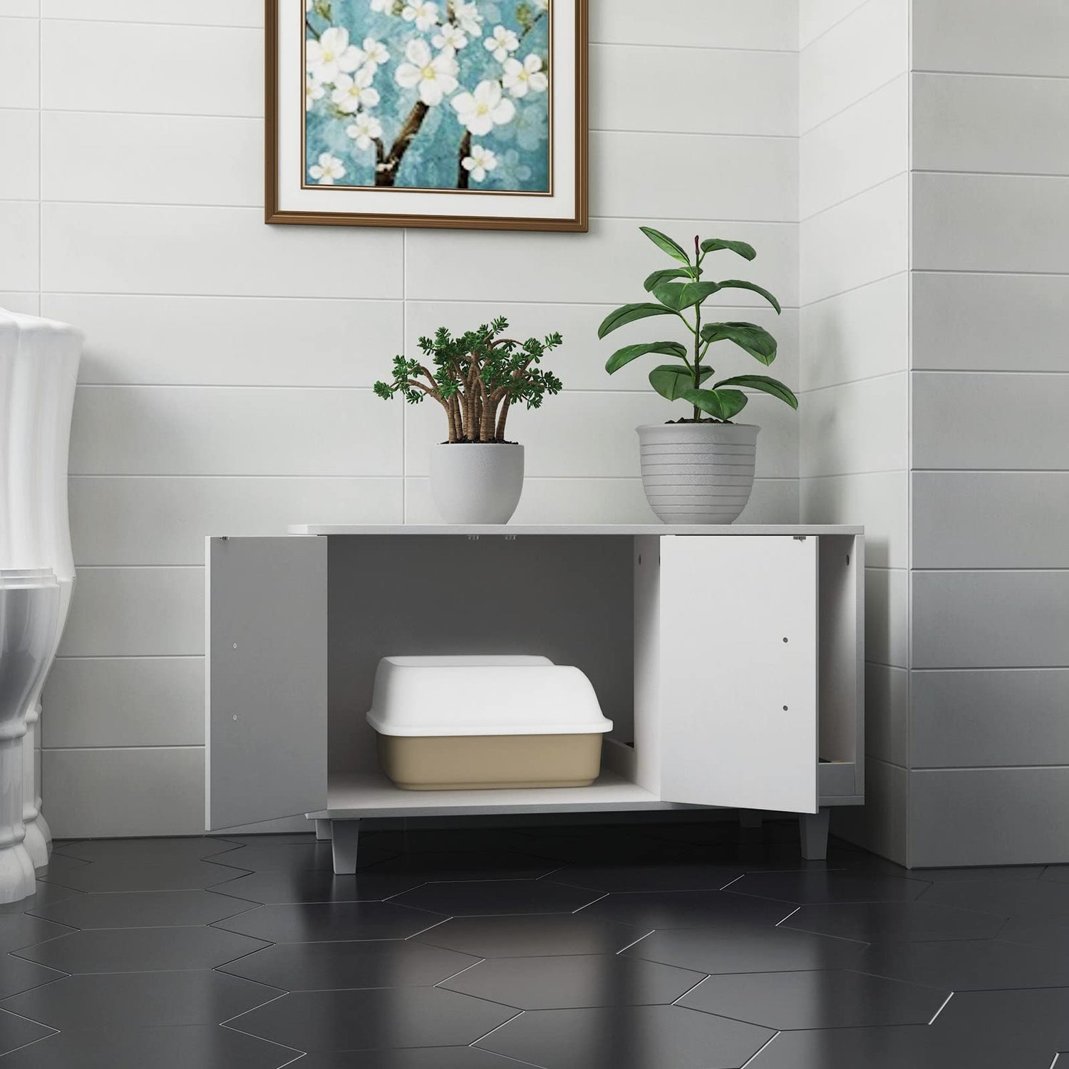 Stop worrying about tucking the litter box away in a corner, and hide it in plain sight!