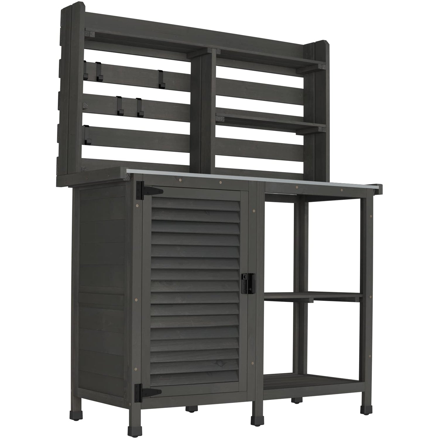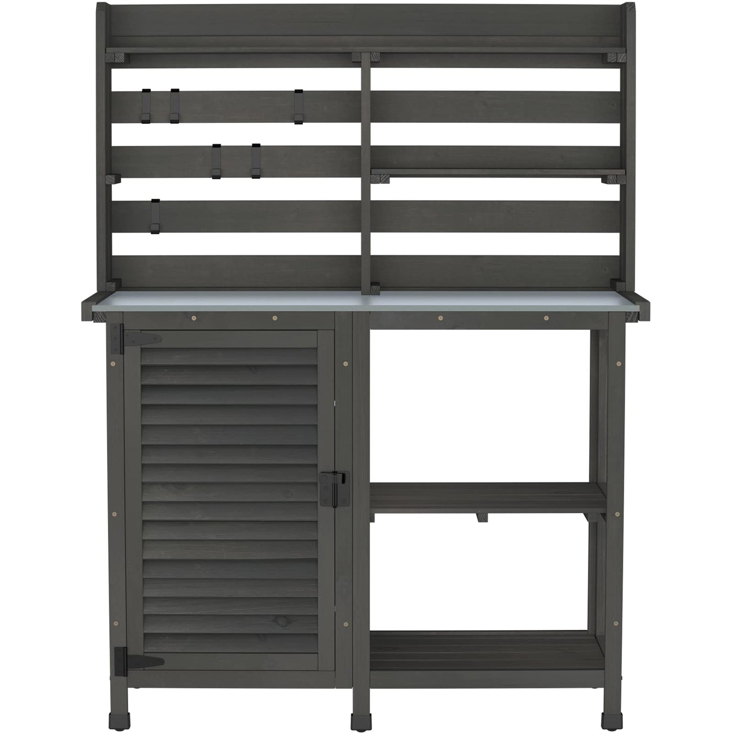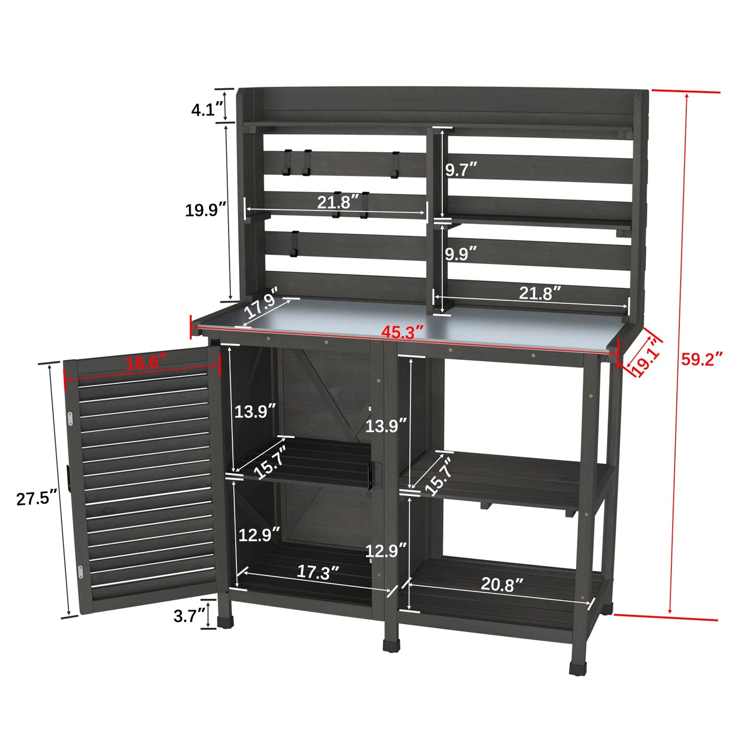 GDLF Potting Bench Table Large Garden Outdoor Work Bench Metal Tabletop Workstation with Storage Cabinet Shelf Dark Grey