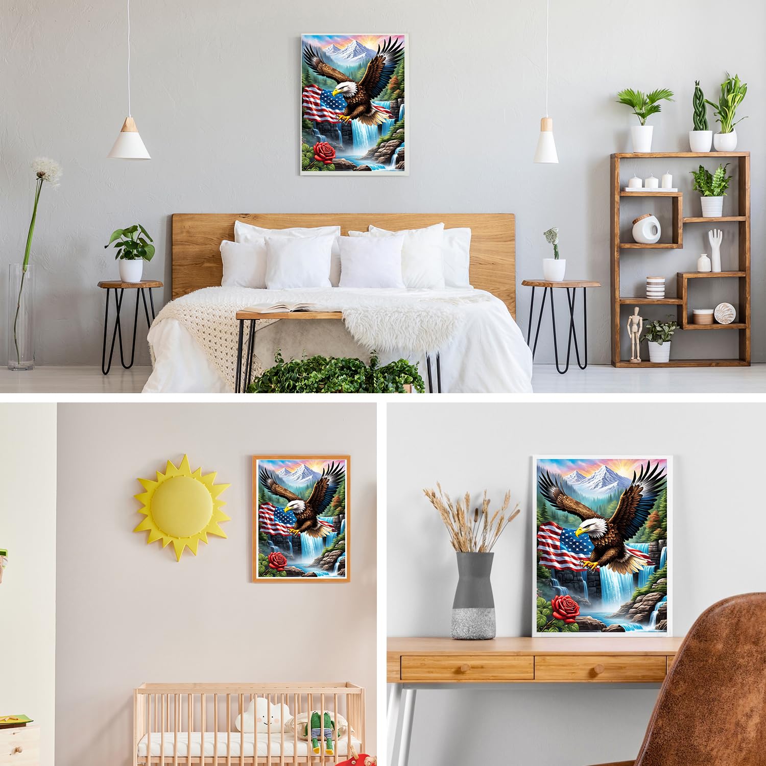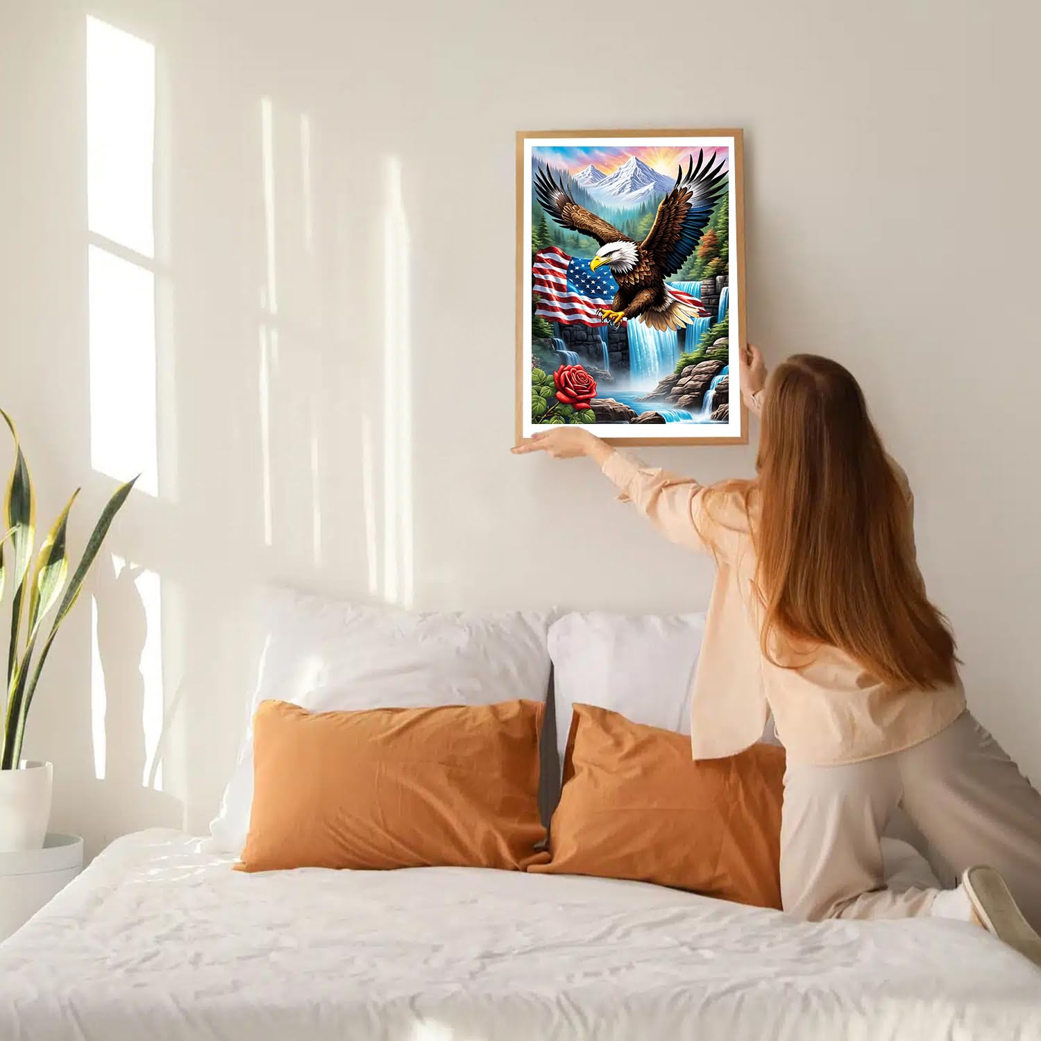 GDYEEH DIY 5D Eagle Diamond Art Kits, Round Full Drill Waterfall Mountain Diamond Painting Picture, Fantasy Painting by Numbers Art Kits for Adults Beginners Home Wall Decor 12x16 inch