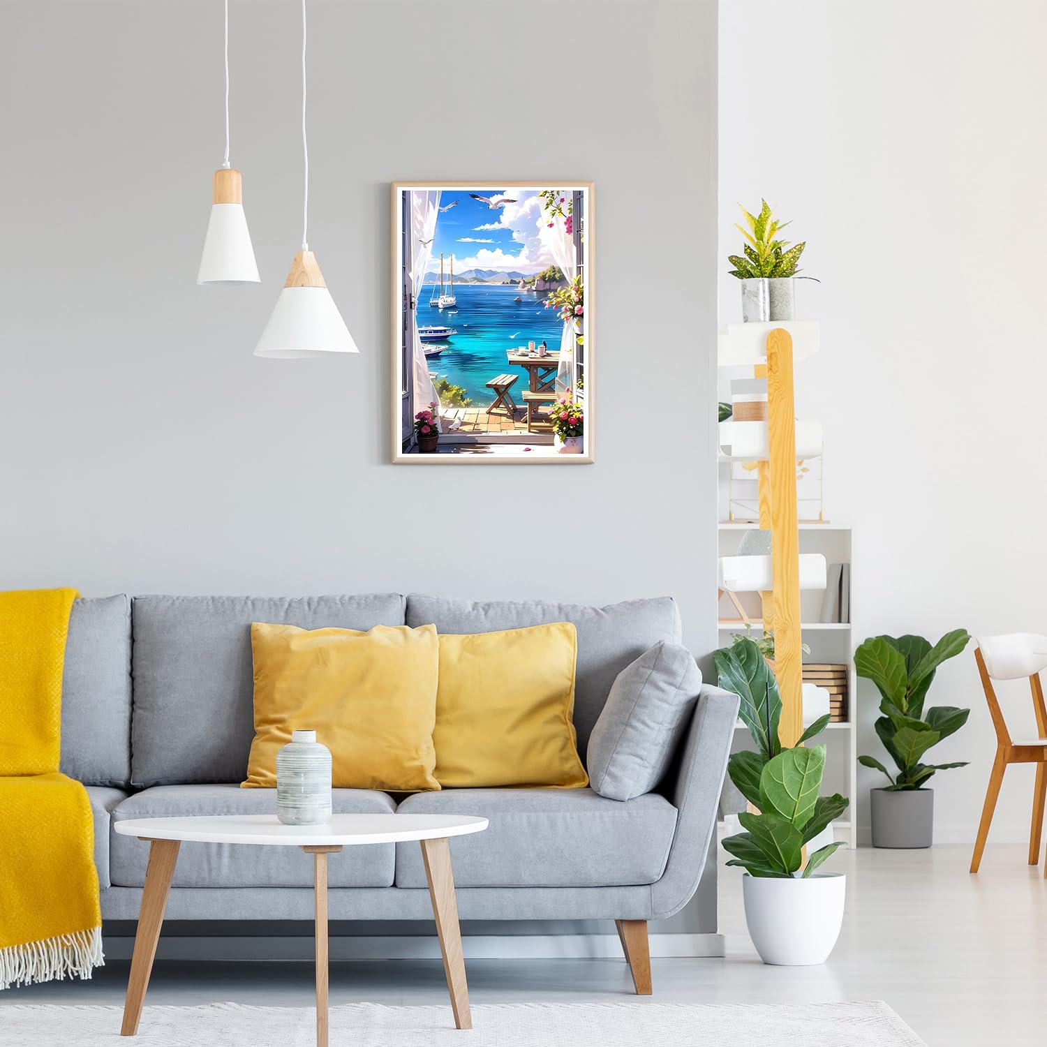 GDYEEH DIY 5D Sea View Room Diamond Art Painting Kits, Flowers Full Round Drill Sparkling Diamond Painting Picture, Boat Diamond Painting Art Craft Kits for Adults Beginners, Home Wall Decor 12x16inch