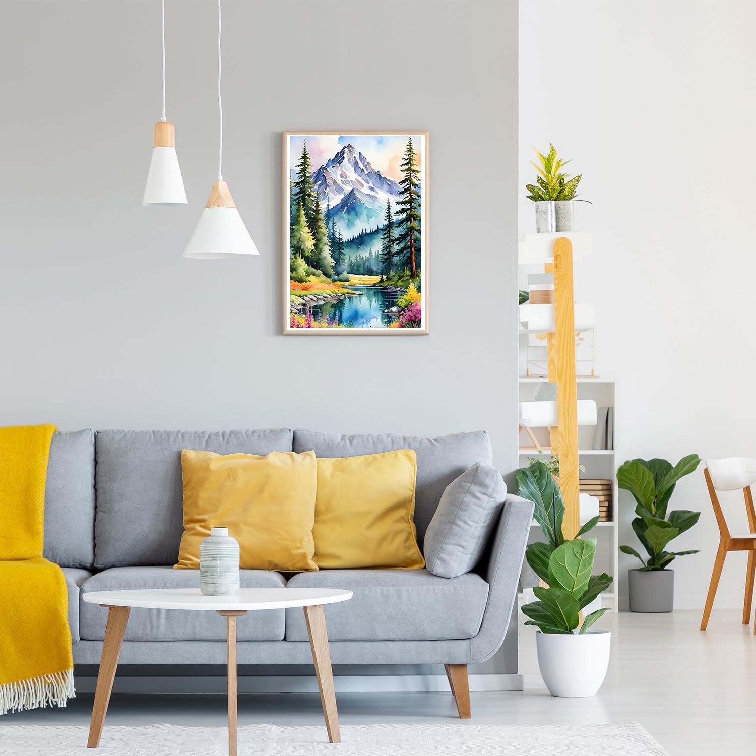 GDYEEH DIY 5D Snowy Mountain Diamond Art Kits, Round Full Drill Sparkling Forest Diamond Painting Picture, River Painting Art Kits Craft for Adults Beginners, Home Wall Decor 12x16 inch