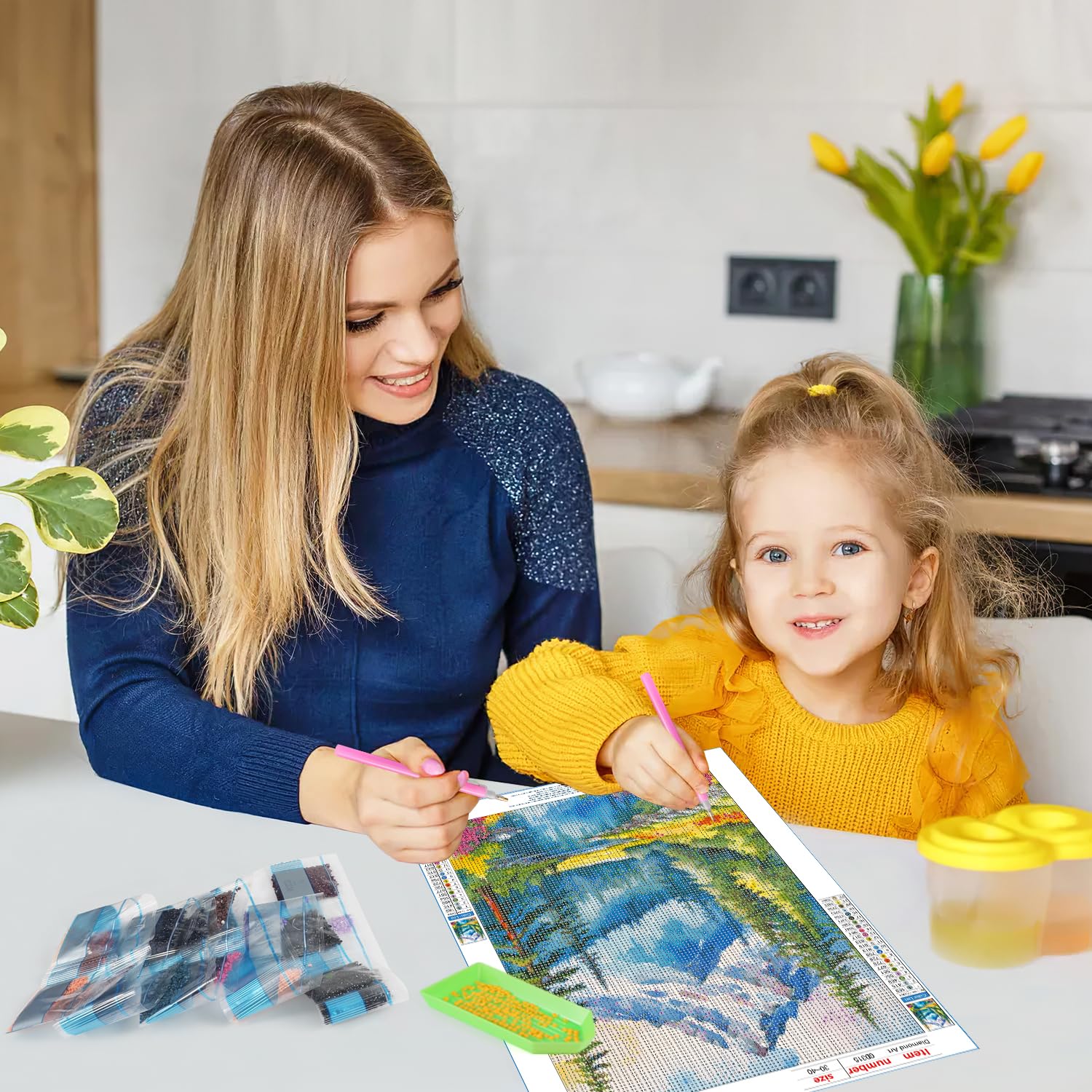 - 【Complete Diamond Art Painting Kits】Each 5D diamond art kit comes with everything you need to get started, so there's no need to buy any other tool kits. The round diamonds are fully drilled throughout the picture and each diamond sparkles. If you have enough time and patience to complete this challenge, you will get a beautiful piece of art.