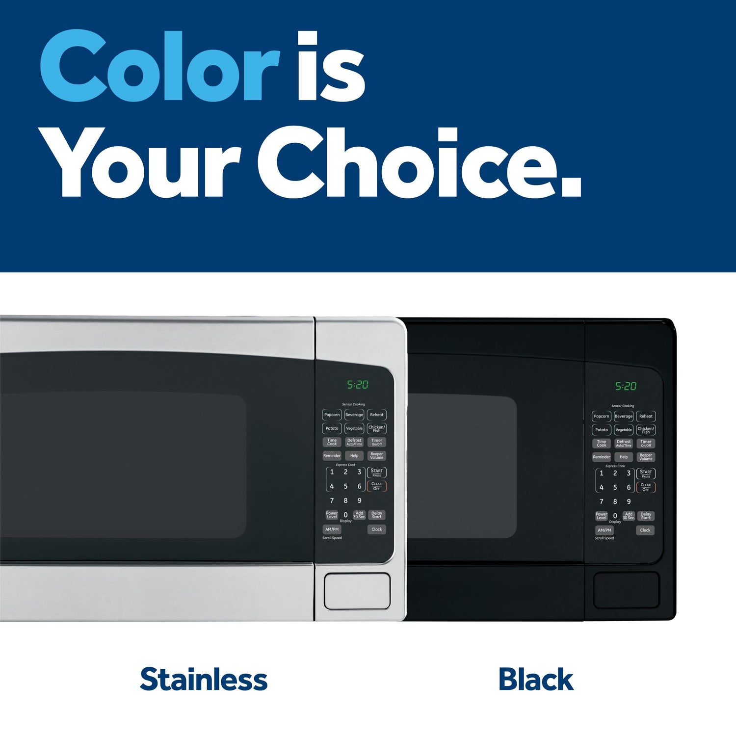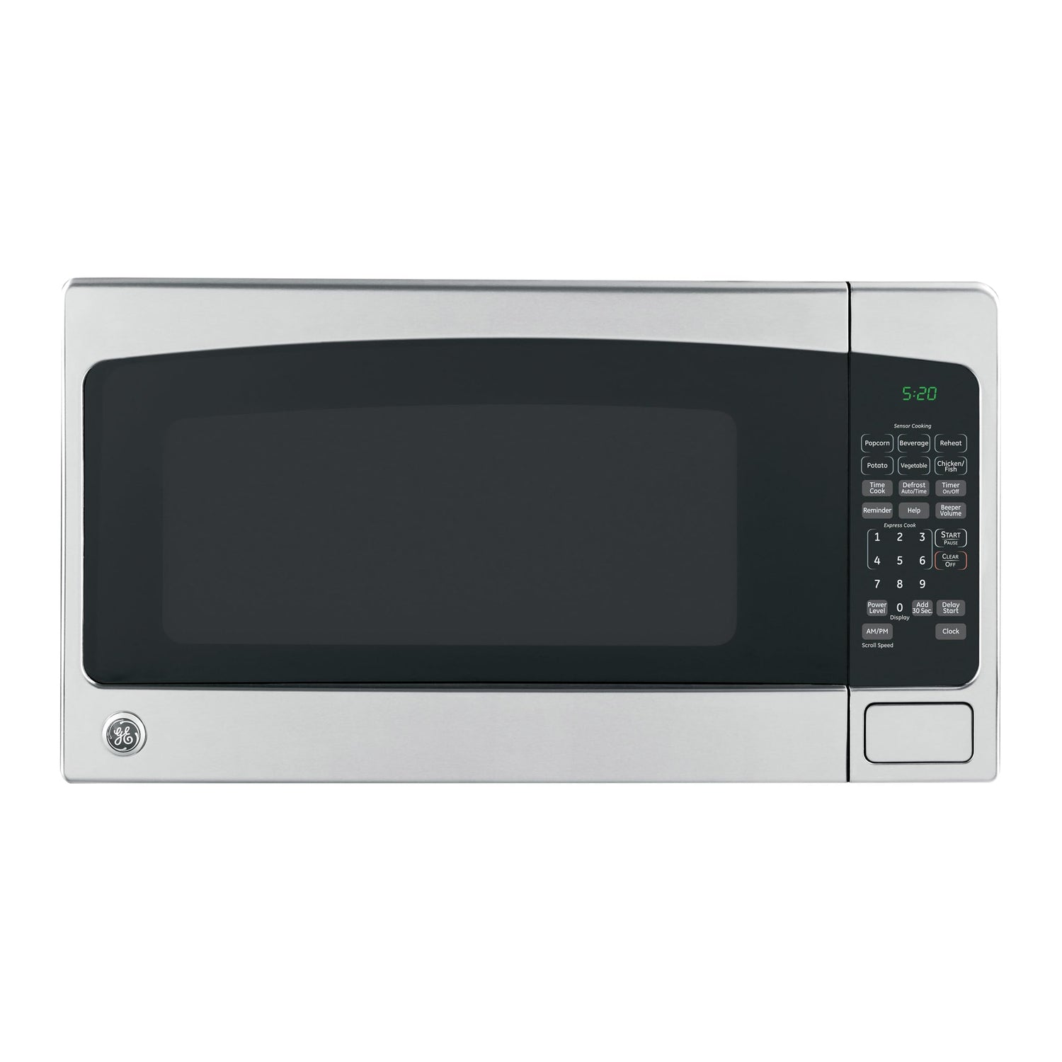 Details: Heat leftovers and speed up cooking in your kitchen with this GE countertop microwave. Instant-on settings let you cook popcorn, vegetables and other foods with the touch of a single button, while weight and time defrost options make it easy to prepare meats for cooking. Featuring a large turntable, this GE countertop microwave delivers even, reliable heating for your dining and snacking needs.