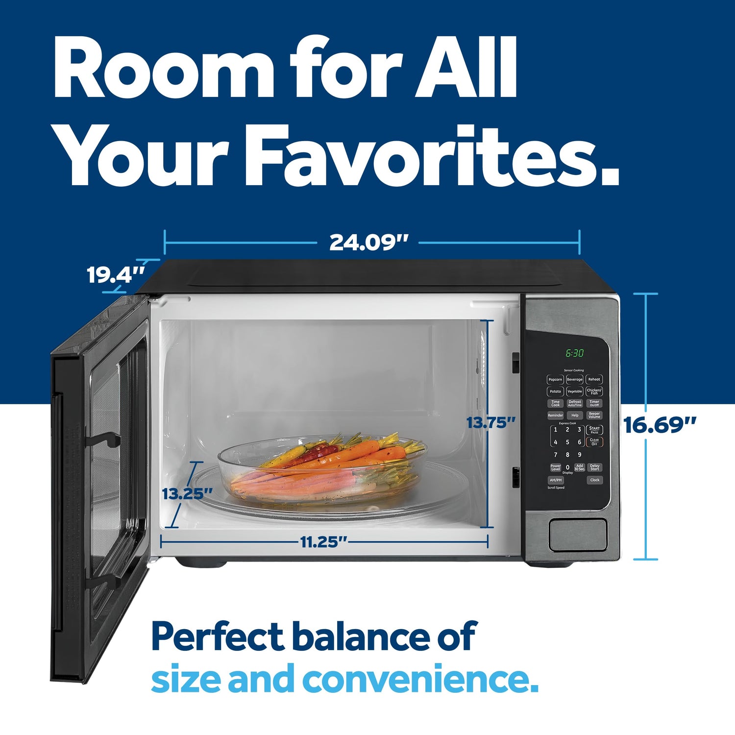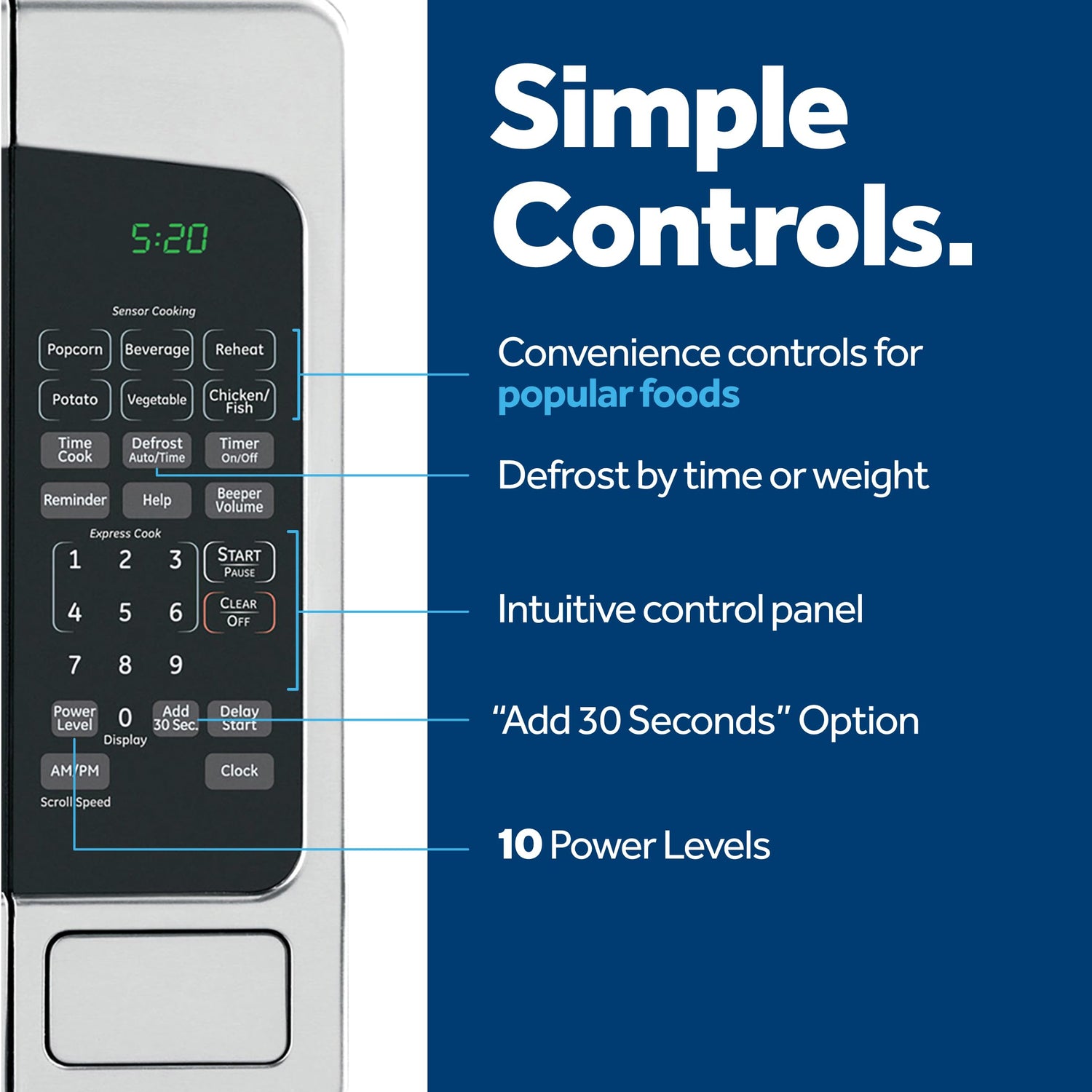 GE Countertop Microwave Oven, 1,200-watt Capacity, 2.0 Cubic Ft., 8 Auto Setting Cooking Settings, Child-Lock Technology, Kitchen Essentials for the Countertop, Dorm Room or Apartment, Satinless Steel