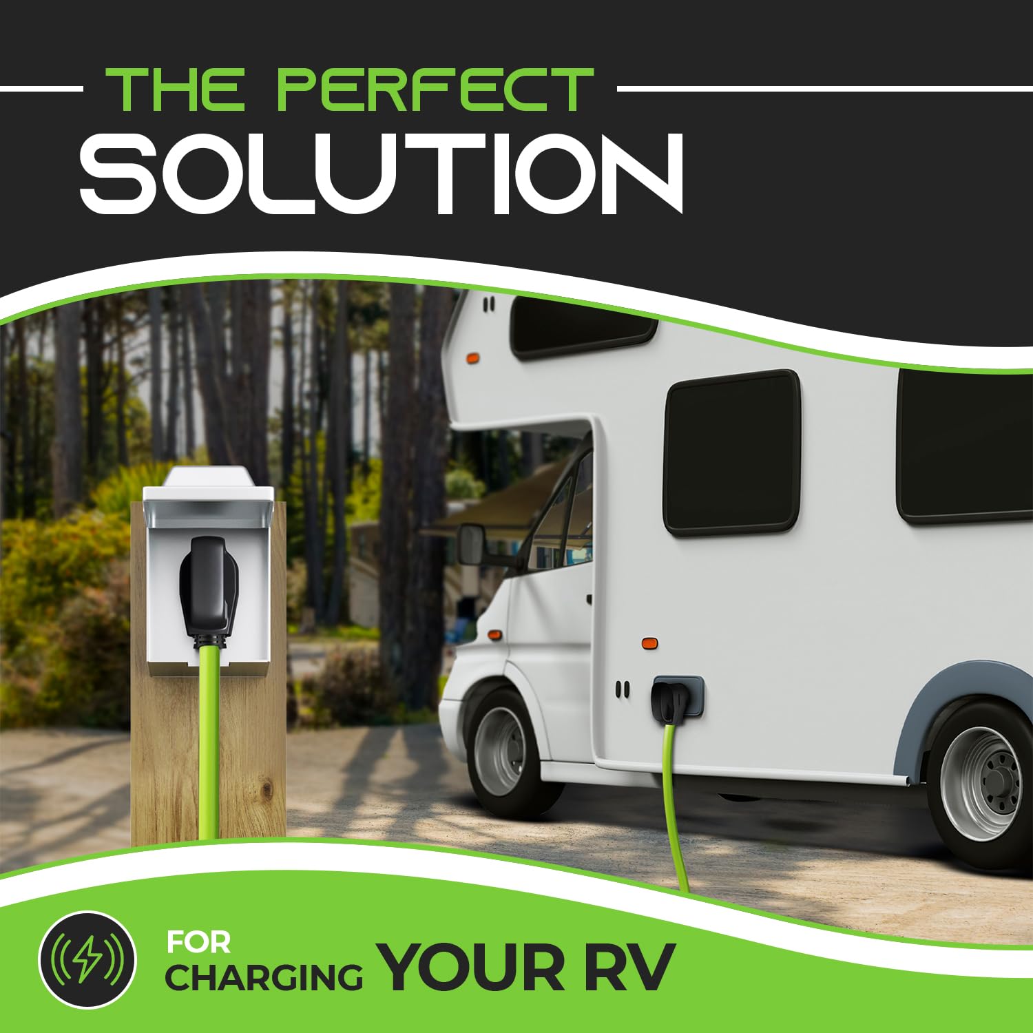 - 30 Amp Extension Cord for RV - This 30 amp power cord adds up to 75 feet from the power outlet to your RV, camper or electric vehicle. With NEMA TT-30 connectors, weather resistant outer jacket and bright green color for easy spotting in the dark, this extension cord is the safe and effective choice for powering your vehicle.