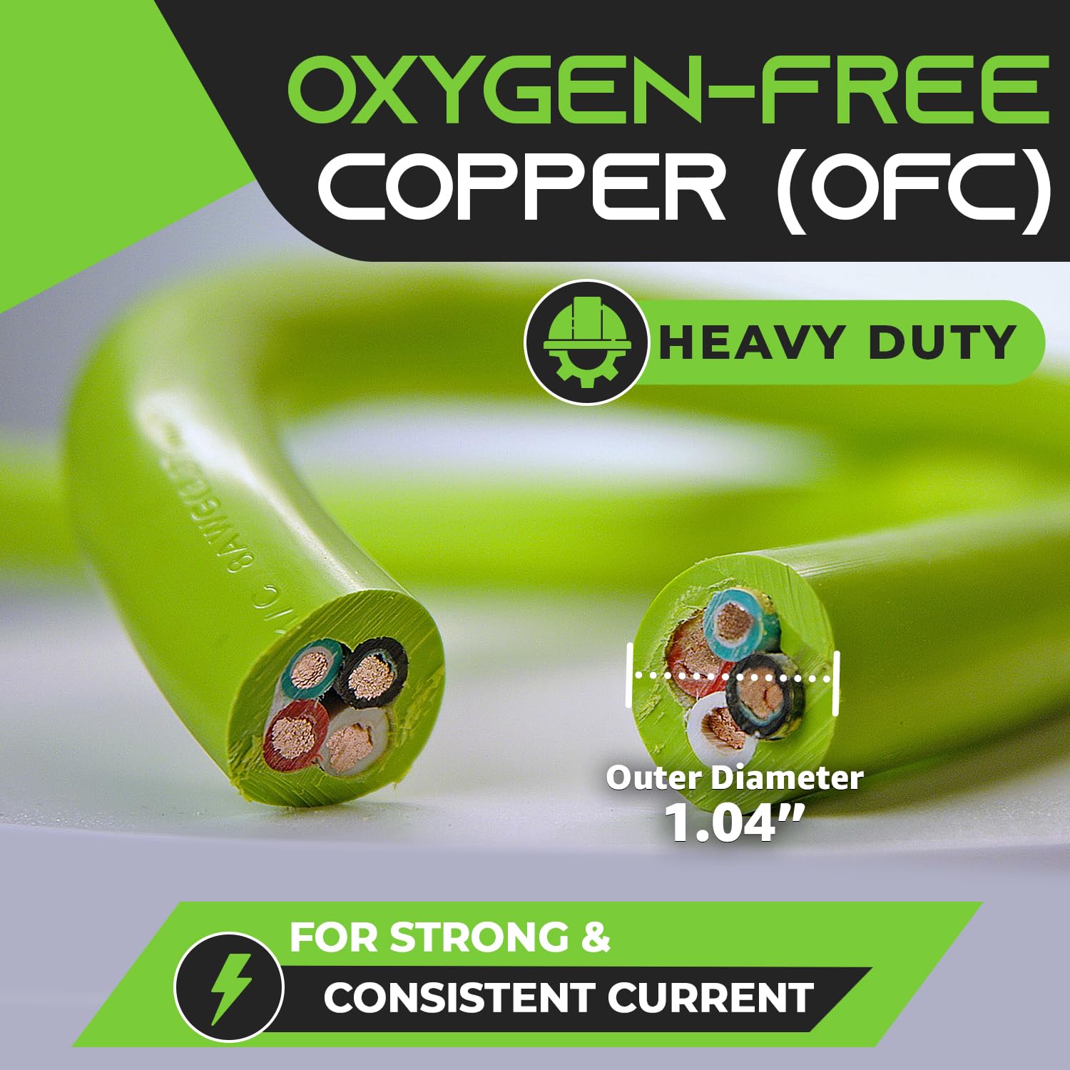 • 50 Amp / 125 or 250 Volt / Up to 12500 Watts - With multiple length options, this heavy-duty 50 amp RV and EV extension cord has a capacity of up to 250 Volts and 12500 Watts. It is constructed with premium oxygen-free copper (OFC) wire, ensuring strong, consistent current flow while charging your vehicle quickly. Please kindly consider the cable's weight of 53.48 lbs before making your purchase