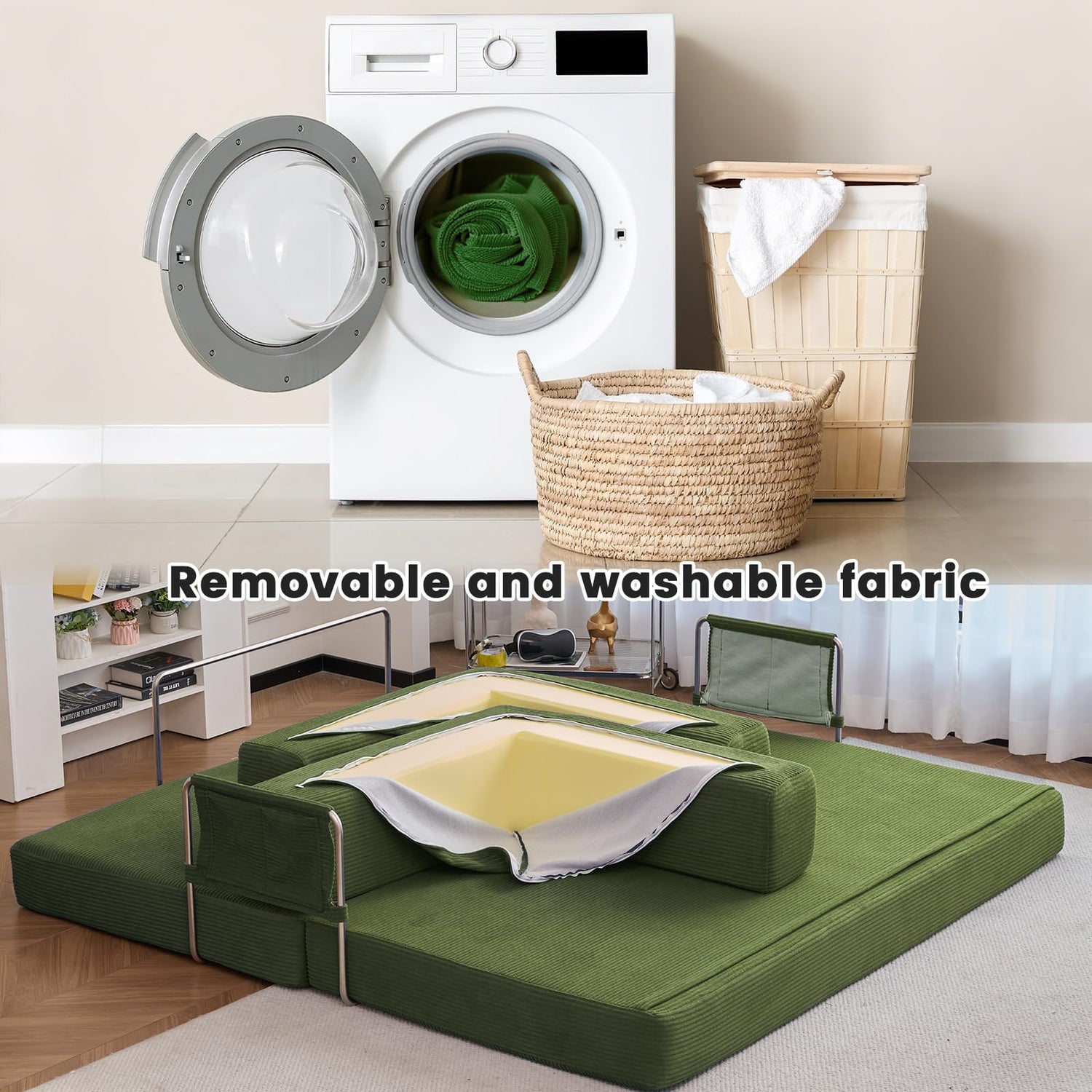 GEARIVY Folding Sofa Bed Convertable Corduroy Couch King Size Floor Sleeper 4-in-1 DIY Combination Modular Sofa Fold Out Futon Lounge Comfy Foldable Lazy cama for Living Room (Green, 80.15")