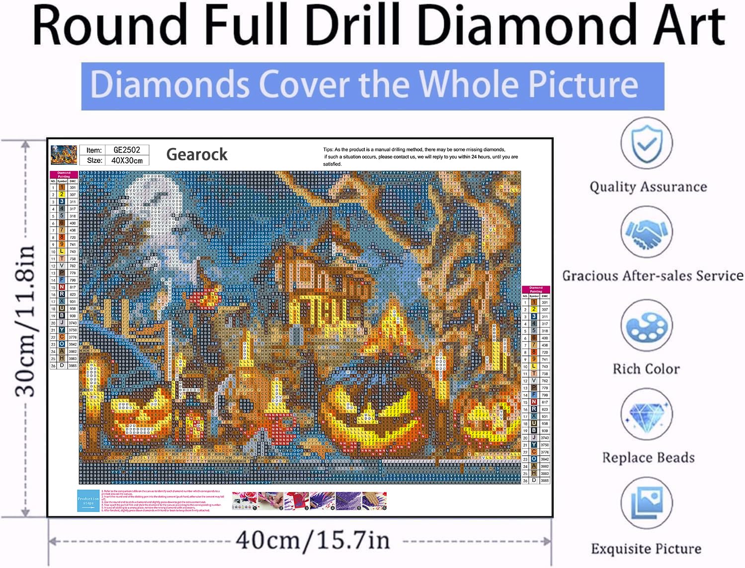 Gearock Diamond Art Kits for Adults, Halloween Pumpkin Easy DIY Beginners 5D Diamond Painting Kits for Room Bedroom Living Room Bathroom Wall Decor 16x12 Inch