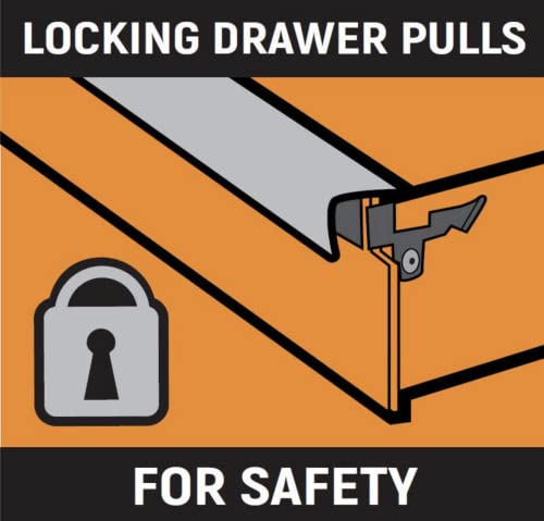 - Drawers use full extension ball bearing slides rated to a 100 lbs load limit