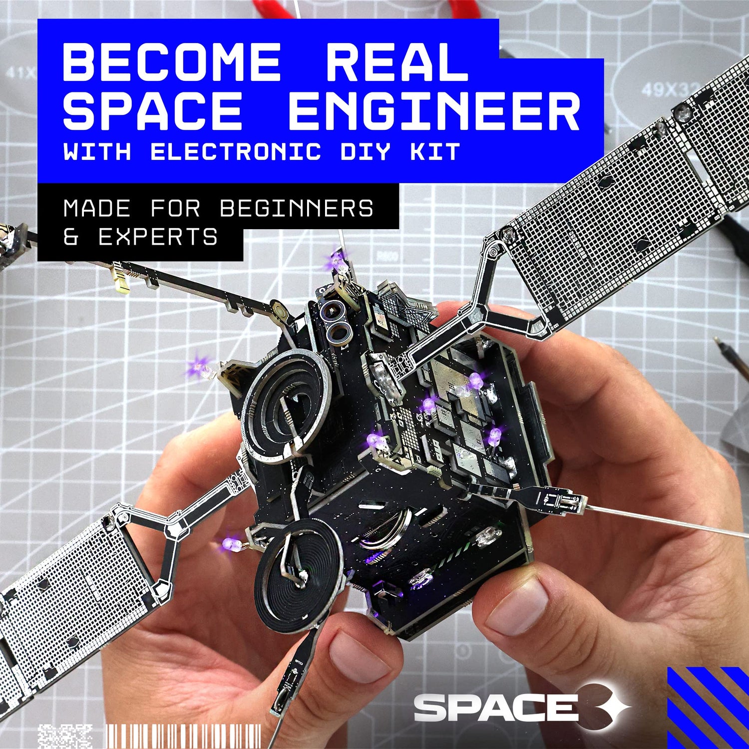 Geeek Club Space O DIY Engineering Kit - Solar Orbiter Model Building Kit - Solar-Powered Science Toy Kits - Educational STEM Kit, Electrical Engineering Kit - DIY Toy Gift for Adults, Teens, Kids 14+