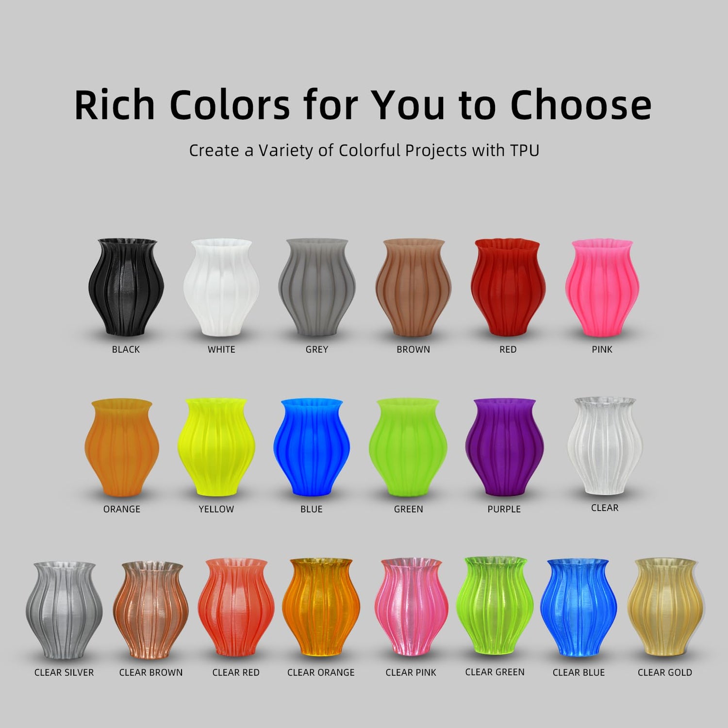 - 【Durable and Elastic】Thermoplastic Polyurethane (TPU) is a flexible, abrasion resistant thermoplastic. It has a shore hardness of 95A and can stretch 3 times more than its original length. If you like print rubber-like flexible and resistant models, parts, tools, etc, Geeetech TPU is a ideal choice for you.Printed parts of TPU are durable and elastic.