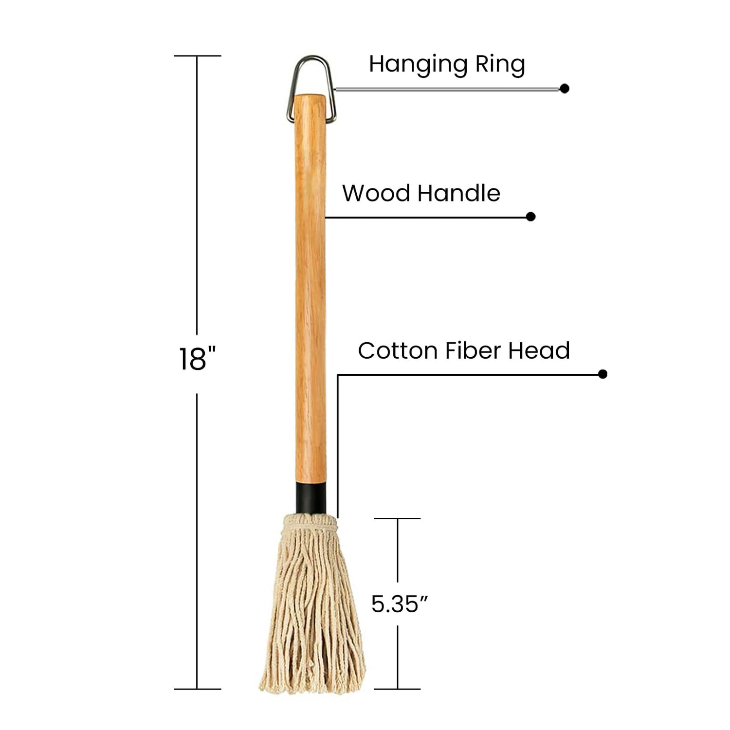 - Premium Quality: The BBQ mop brush is made of 100 % cotton fiber which is food grade and safe to contact with food directly. The fibers of grilling mop brush are durable, flexible and not easy to fall off, great at evenly spreading sauces. Handle is made of high quality wood, comfortable to grip.