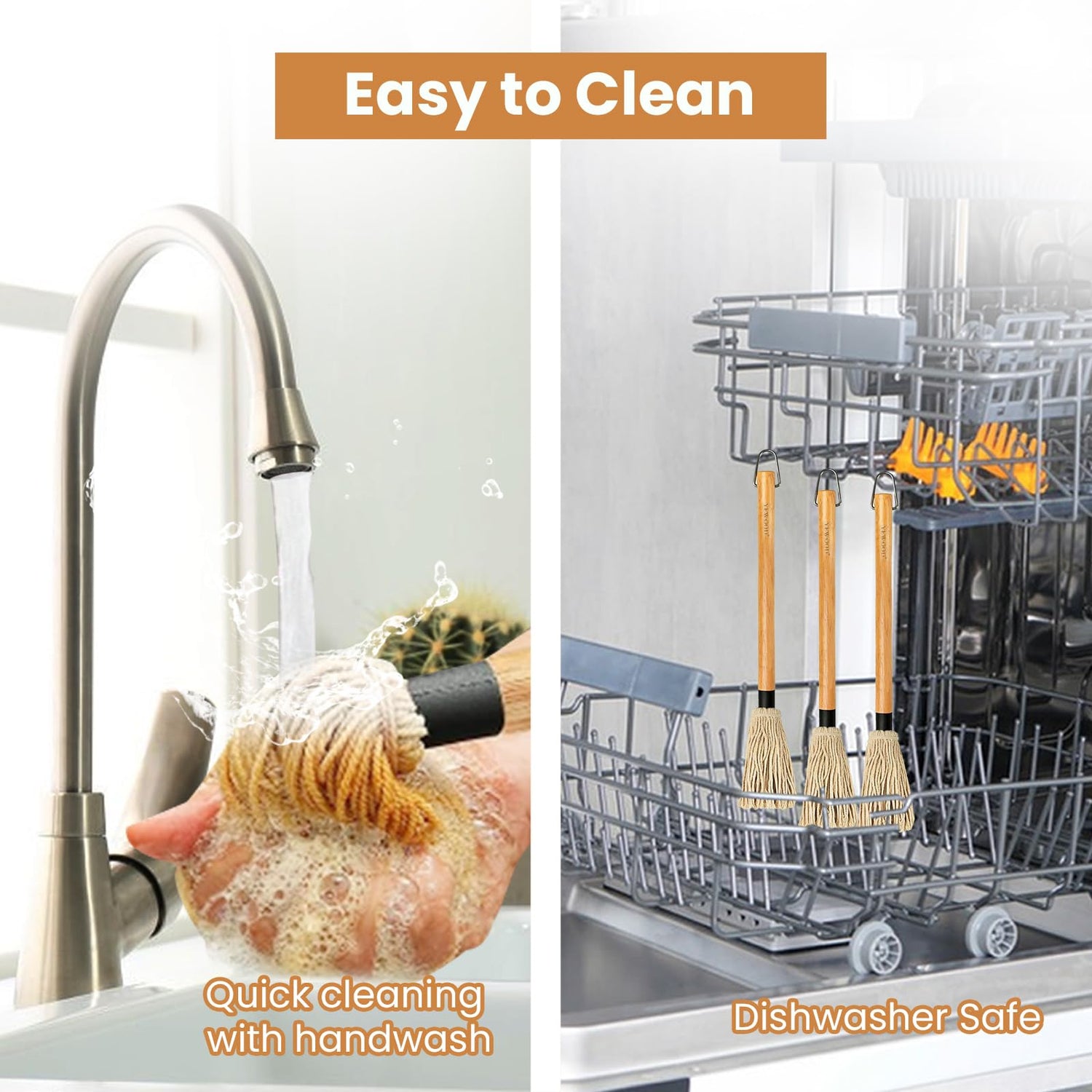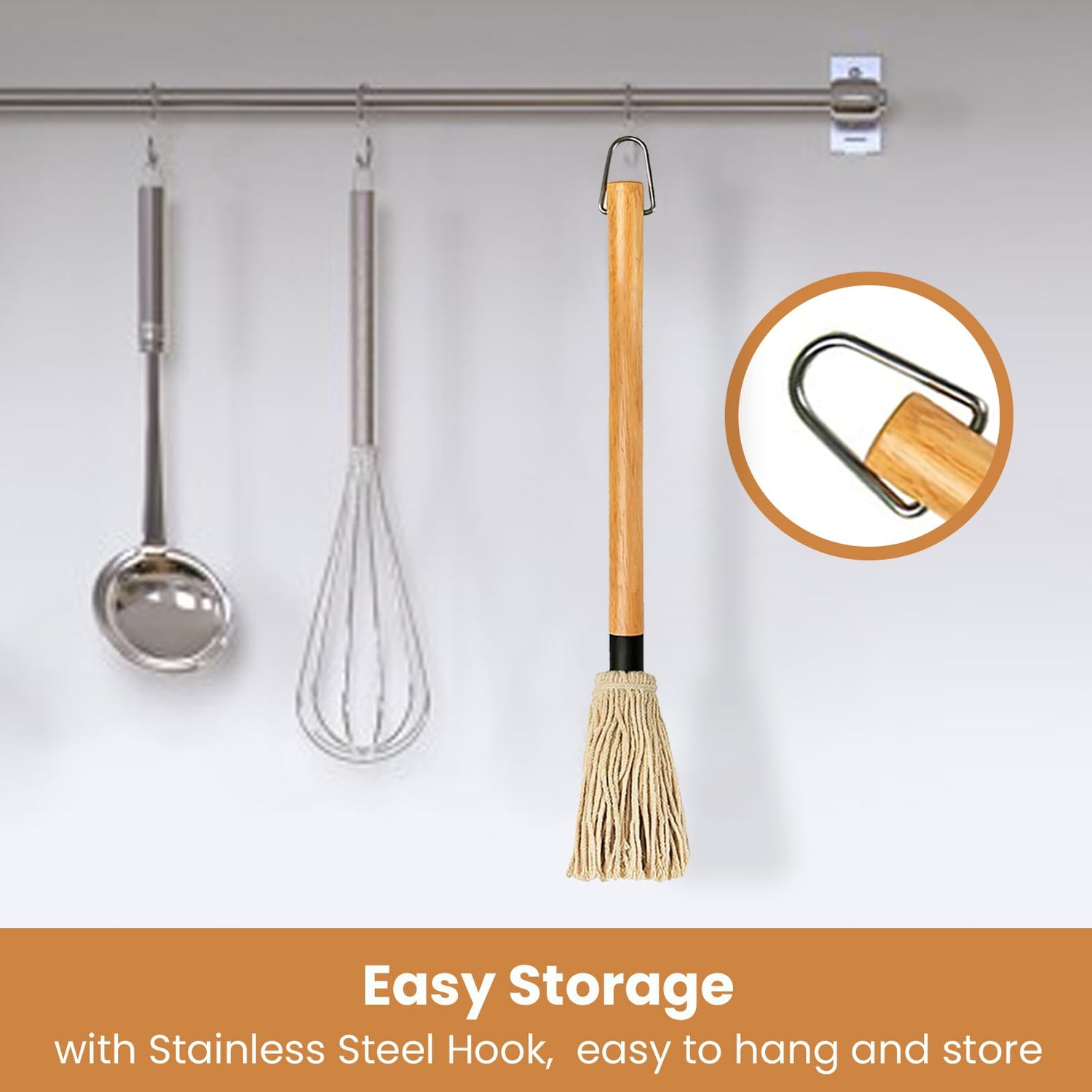 - Wide Applications:The mop is perfect for slashing different sauces for basting and glazing a variety of meats and poultry. It can also be used as a kitchen clean-up brush, the extra long handle makes it easy to reach bottom of cups, glass bottles and surface of the stove.