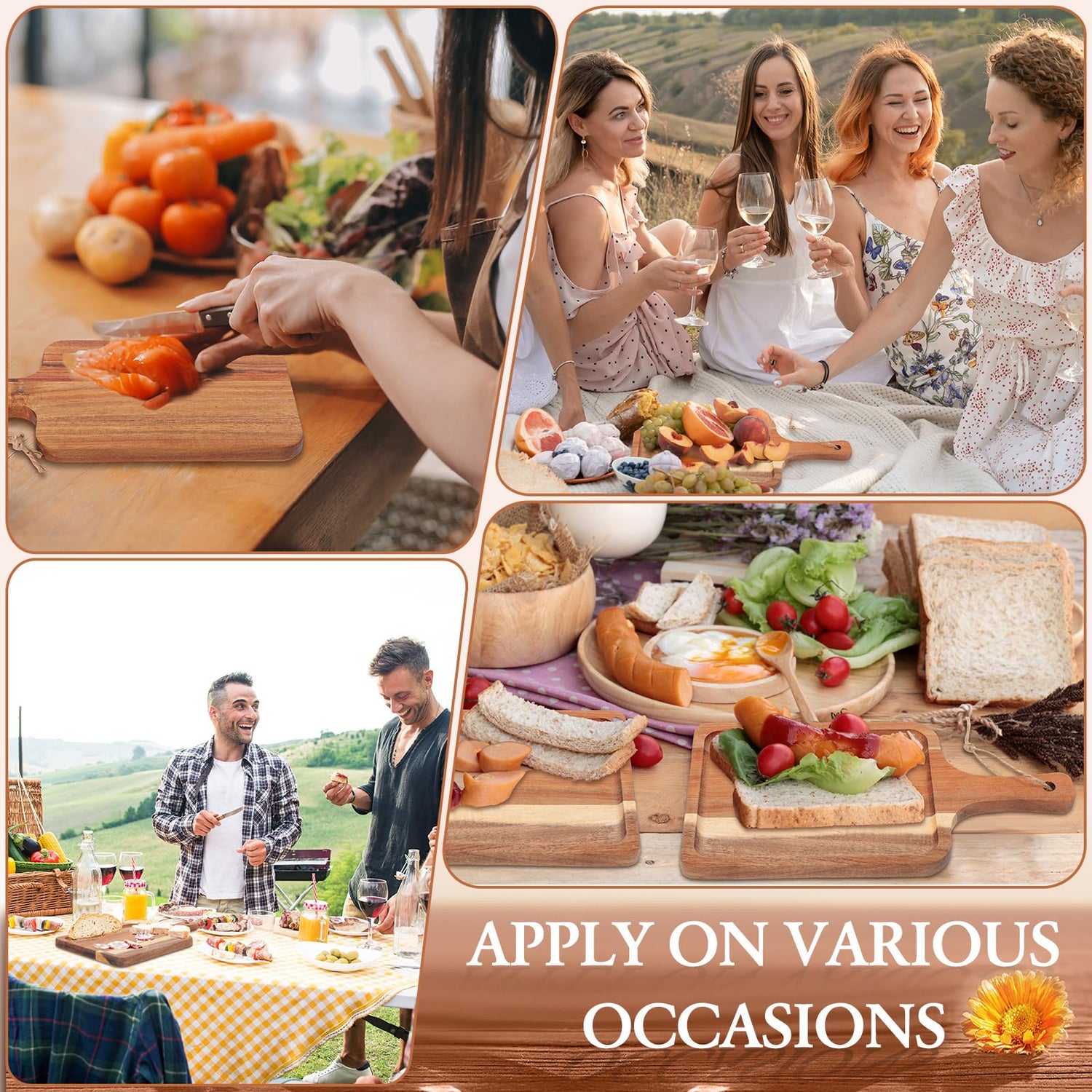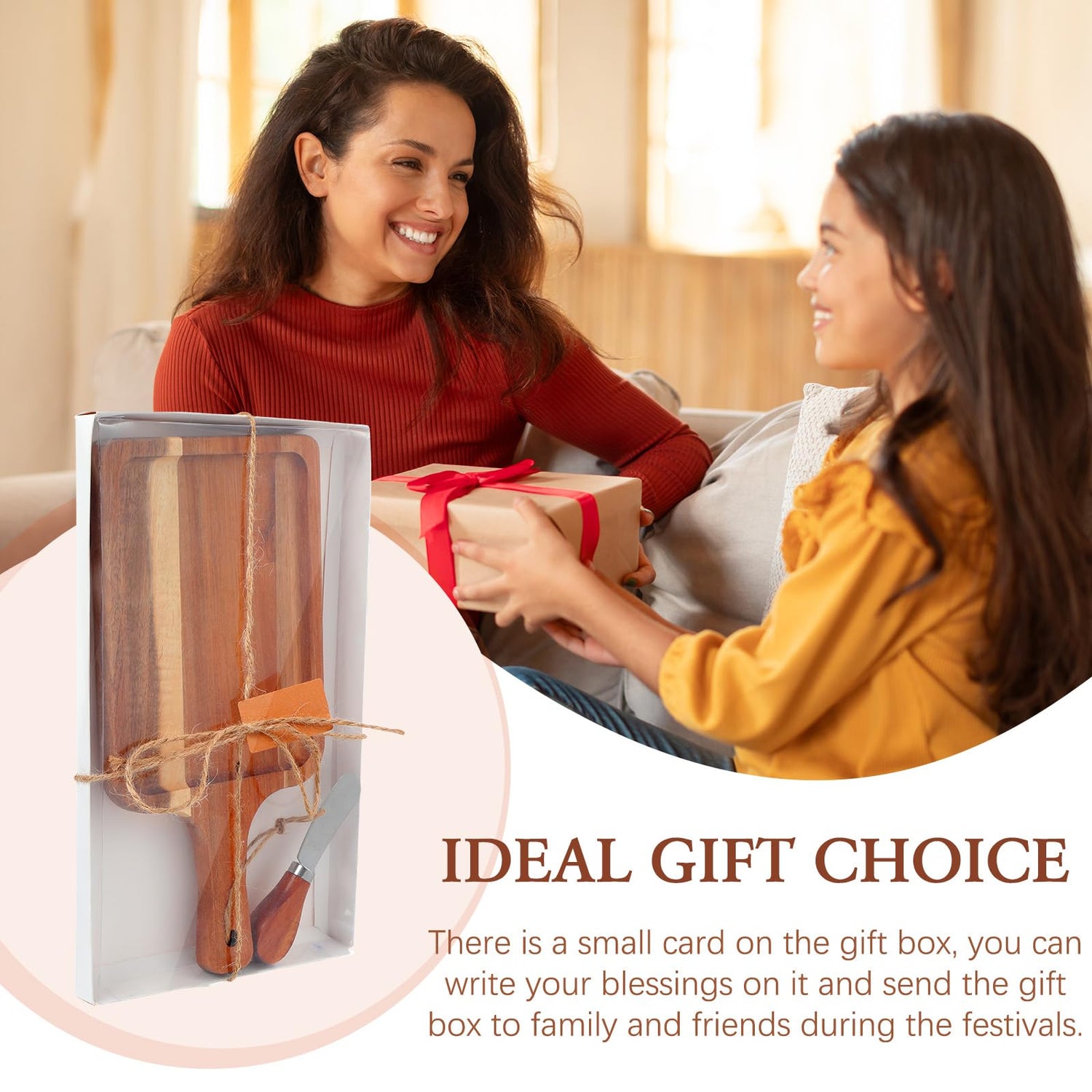 - Package Includes: you will receive 12 sets of acacia wood charcuterie board with knife, gift boxes and cards; The acacia wood chopping boards and knives you receive are packaged in gift boxes, providing you with a one stop gift giving service; You do not need to purchase additional gift boxes, nor do you need to pack them manually