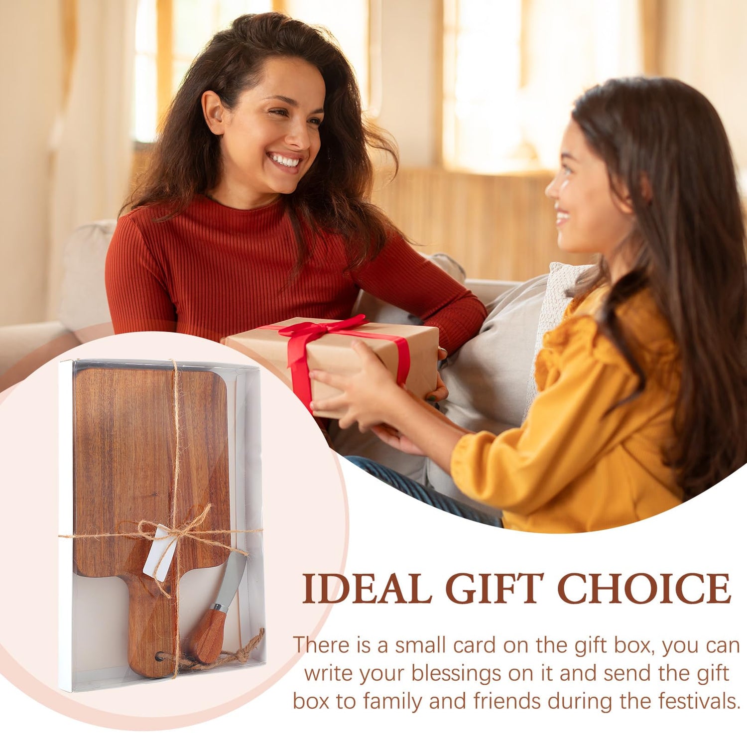 Geetery 12 Sets Acacia Wood Cutting Board with Knife Kitchen Chopping Boards with Handle Engraving Serving Board Charcuterie Boards with Gift Boxes, Cards for Wedding Mother's Day Housewarming Gift