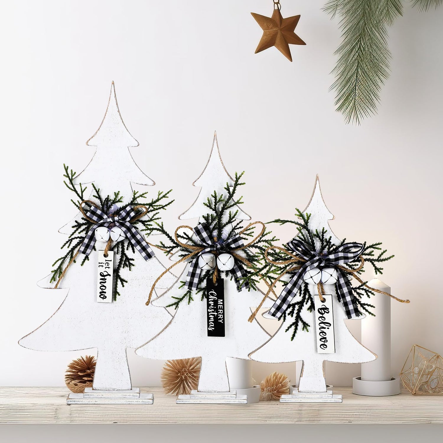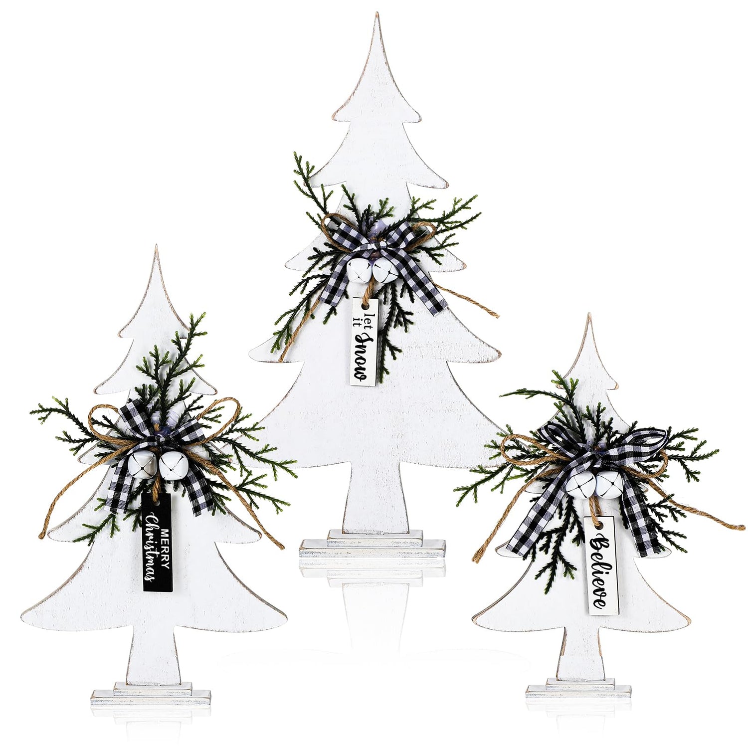 Geetery 3 Pcs Wooden Christmas Trees Table Decor Wood Tabletop Decors Retro Xmas Tree Table Topper Sign Christmas Tall Standing Rustic Wood Christmas Trees Centerpiece for Christmas Winter Holiday