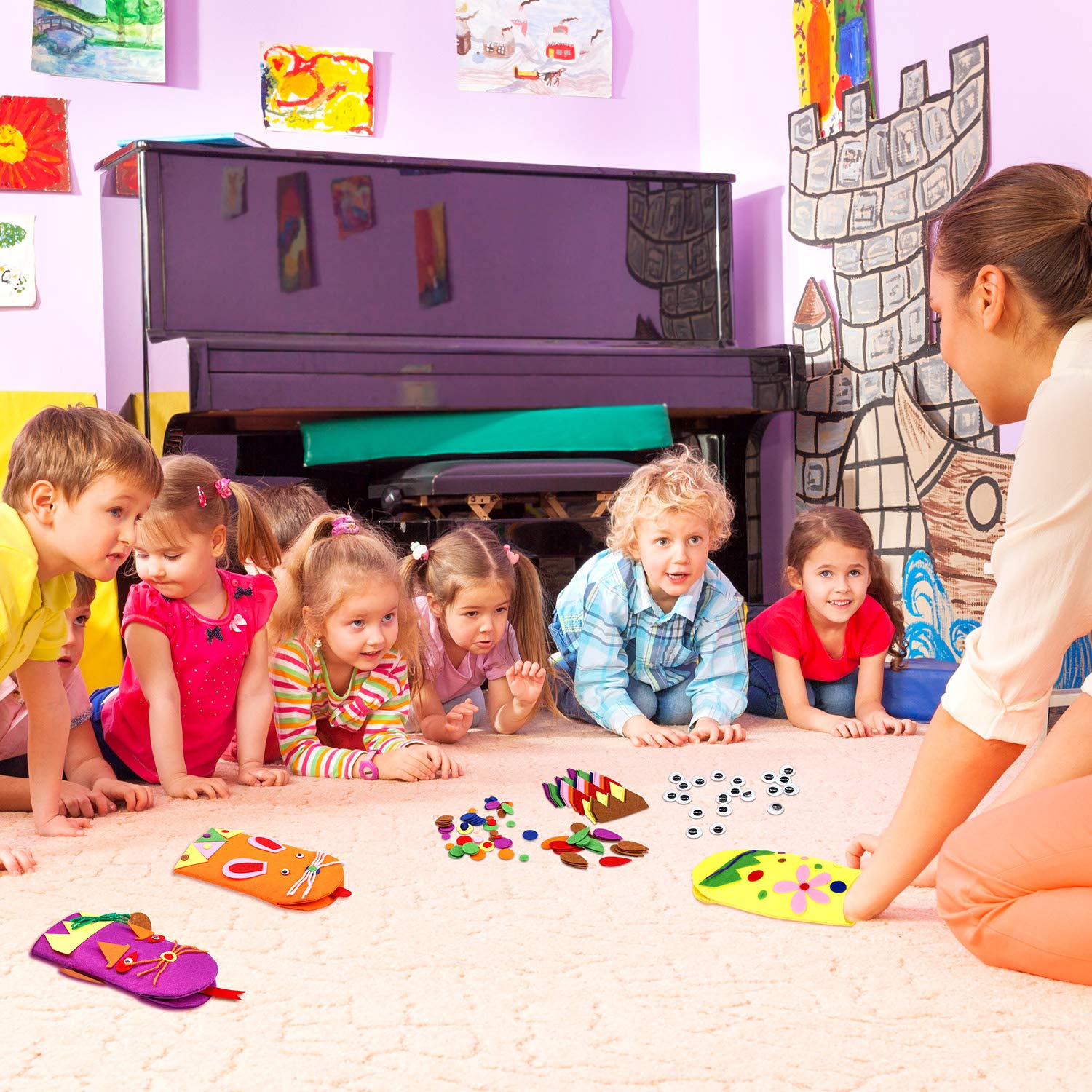 - Package content: you will get 16 pieces of felt socks in 8 colors (each color has 2 pieces) and sufficient amount of creative felt accessories, you can use these felt hand puppet craft kits to make your own hand puppet