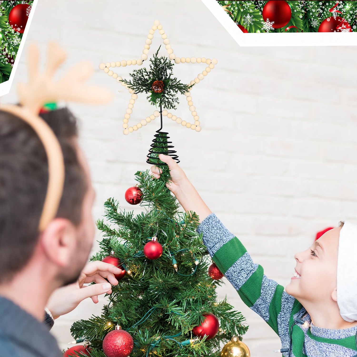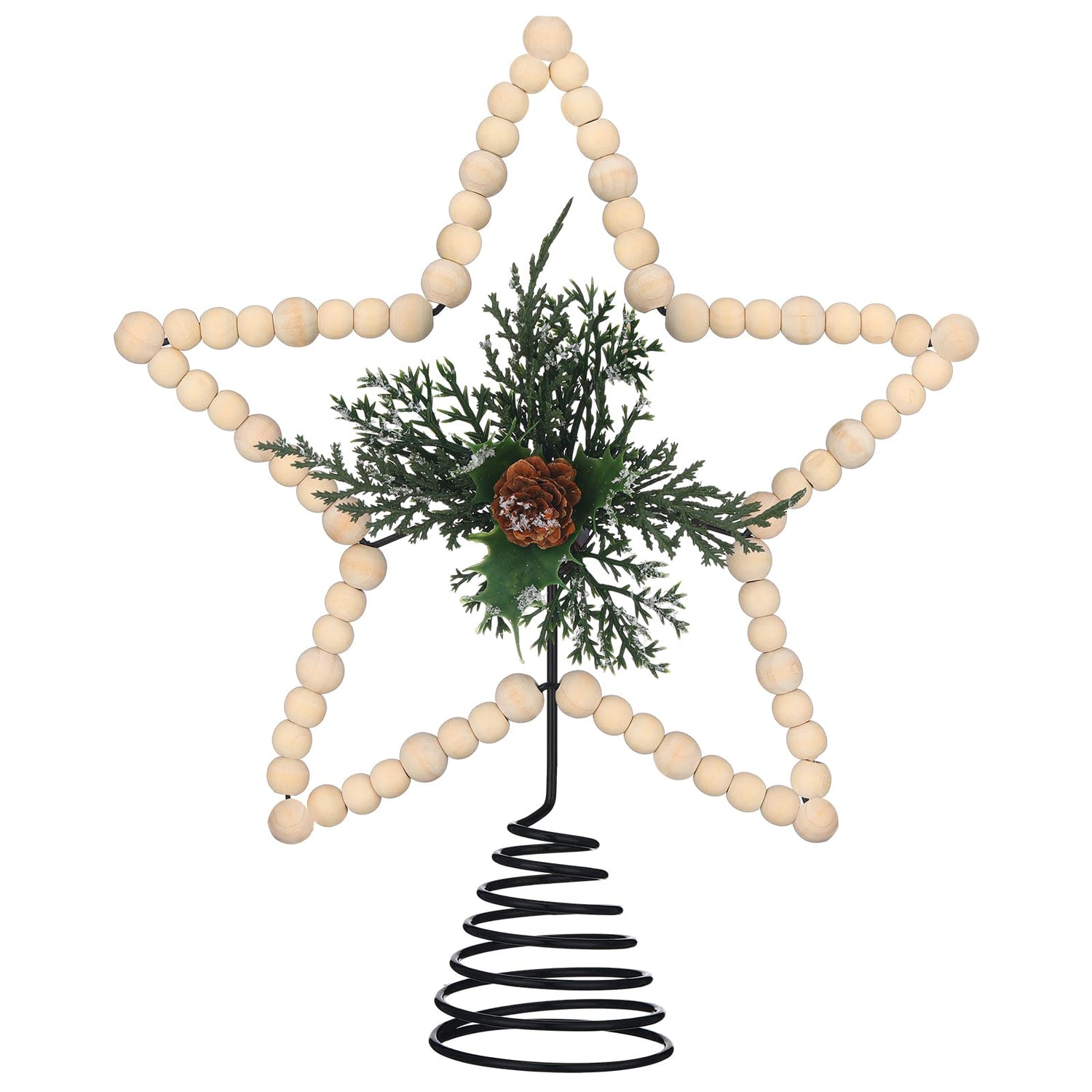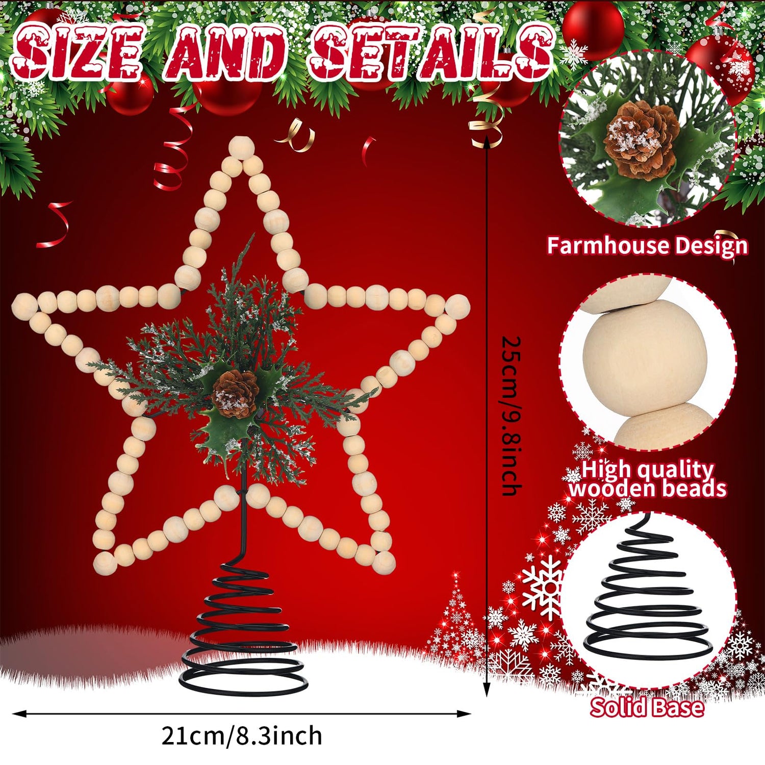 - Star Tree Topper: the star tree topper is designed with a five pointed star pierced by wooden beads; This star tree topper not only brings a traditional appeal to your house but also adds a distinctive vibe with its stylish design