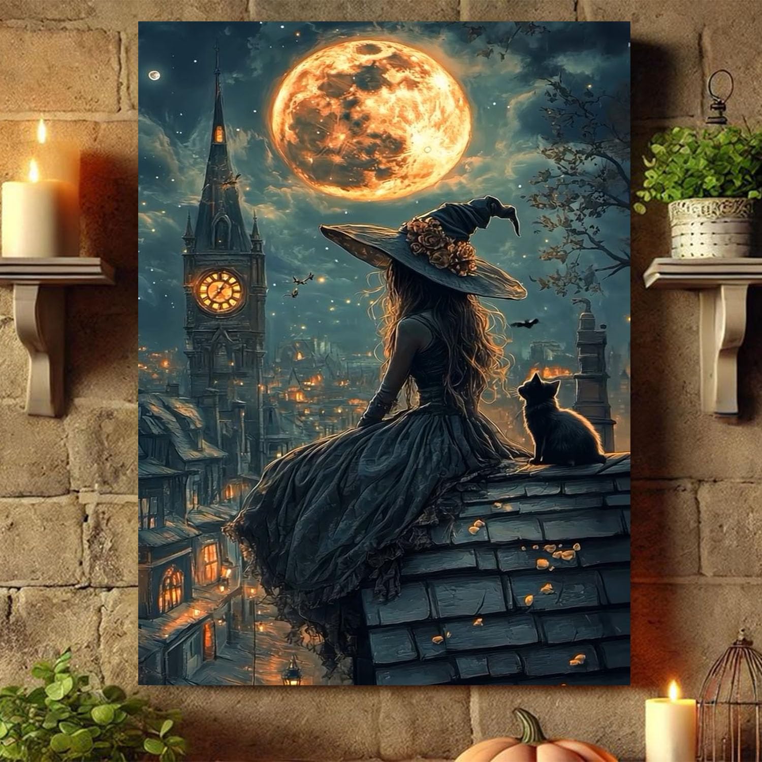 Gemozaic Halloween Paint by Numbers Kit for Adults - Witch Adult Paint by Number Kits on Canvas, Halloween Acrylic Oil Painting by Numbers Kits for Home Wall Decor 16X20 Inch