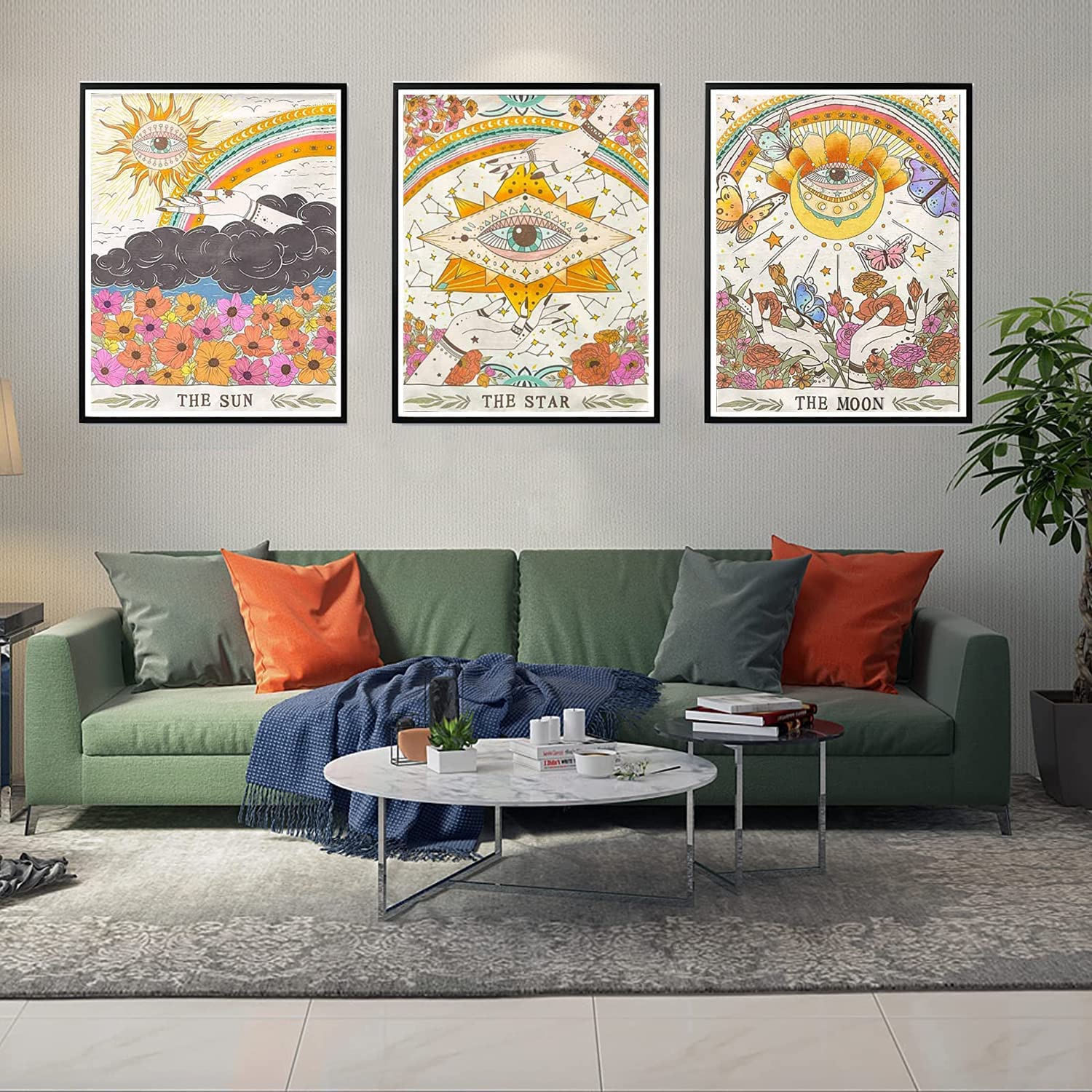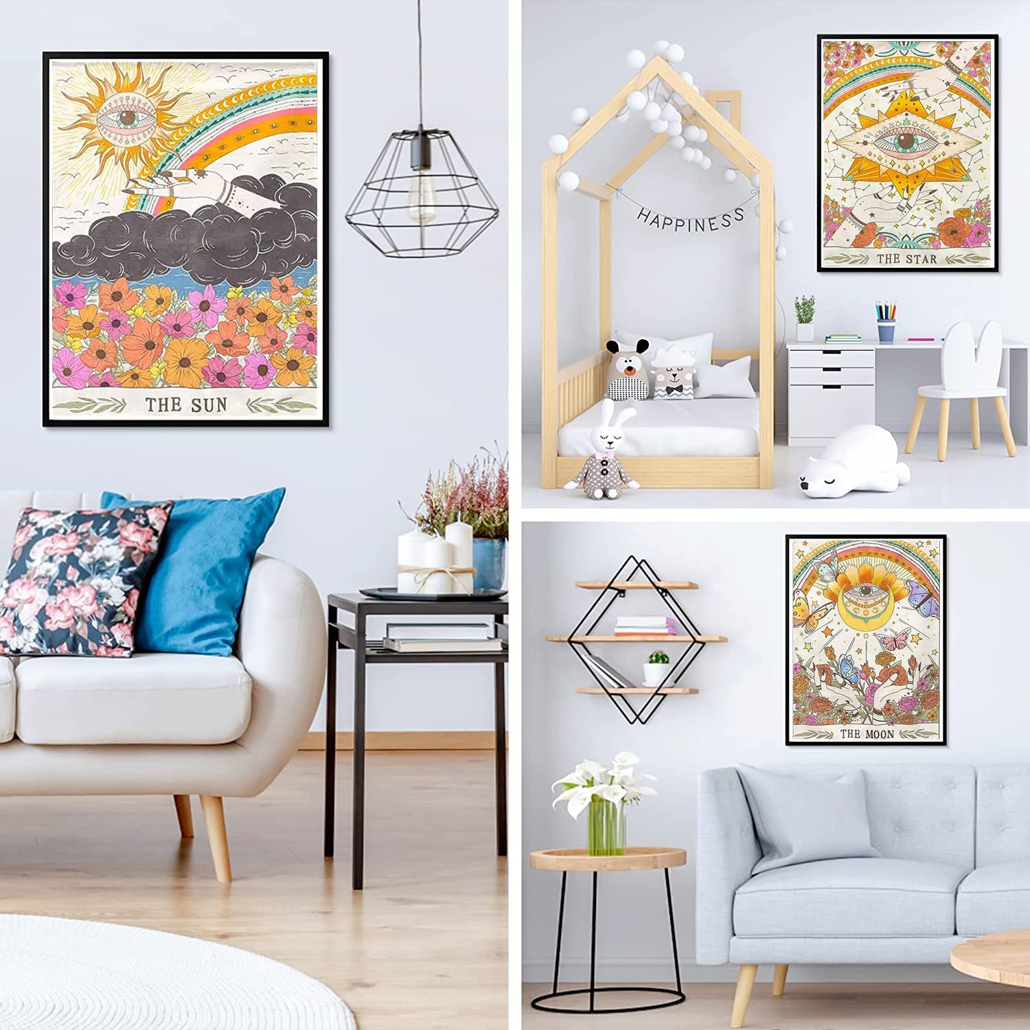 GemZono 3 Pieces Tarot Sun Moon & Stars Adult Diamond Painting Kit, 5D Diamond Art Round Full Diamond Painting Kit, Polka Dot Diamond Digital Painting Kit for Beginners (11.8x15.7in)