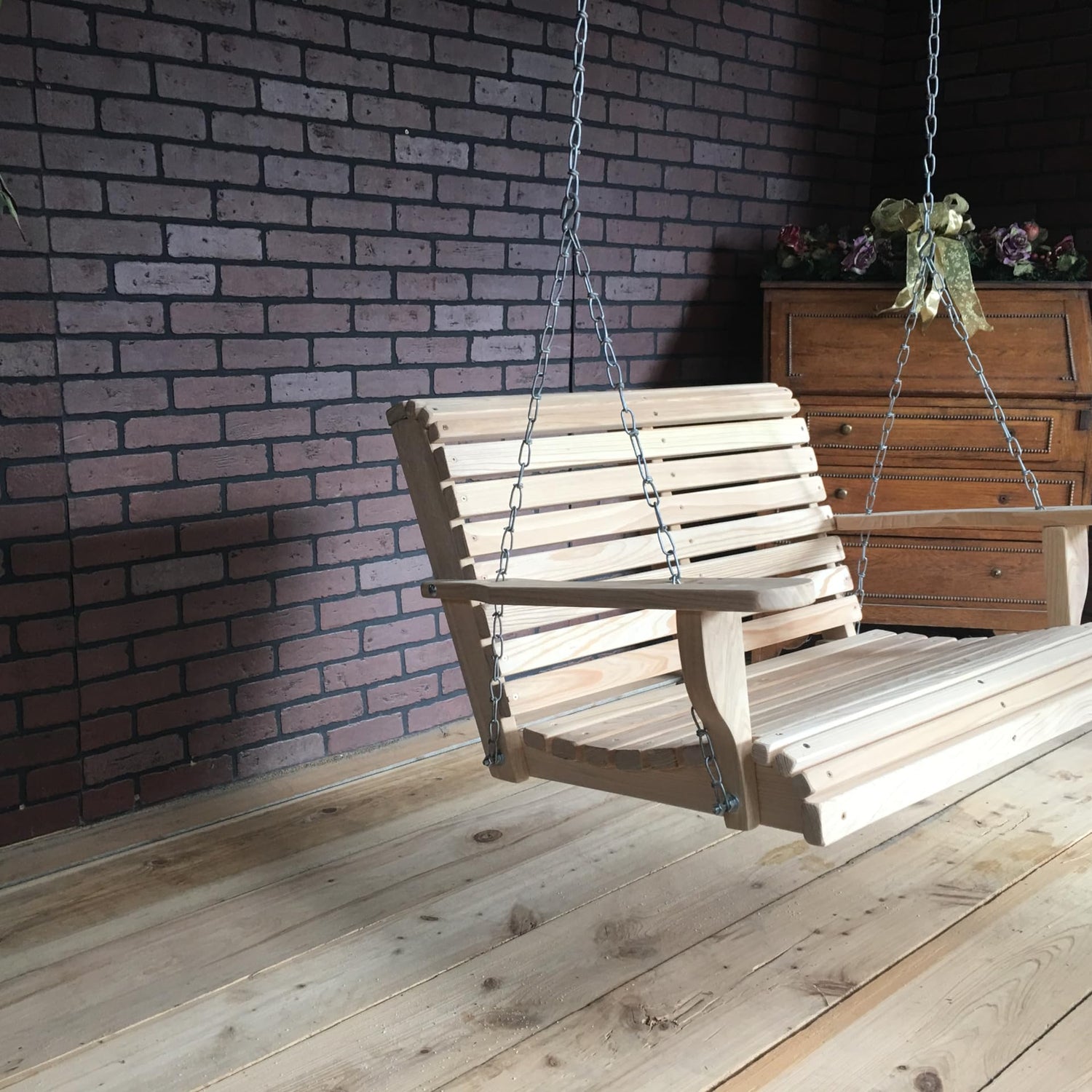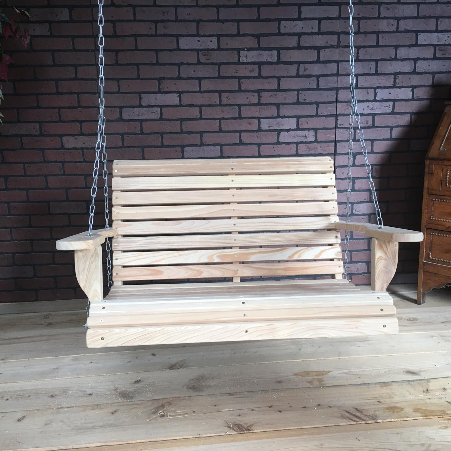 - Cup Holder Arms, Cypress Wood, Rot Resistant, Chains Included, Hand Made in USA, Rolled Front and Back