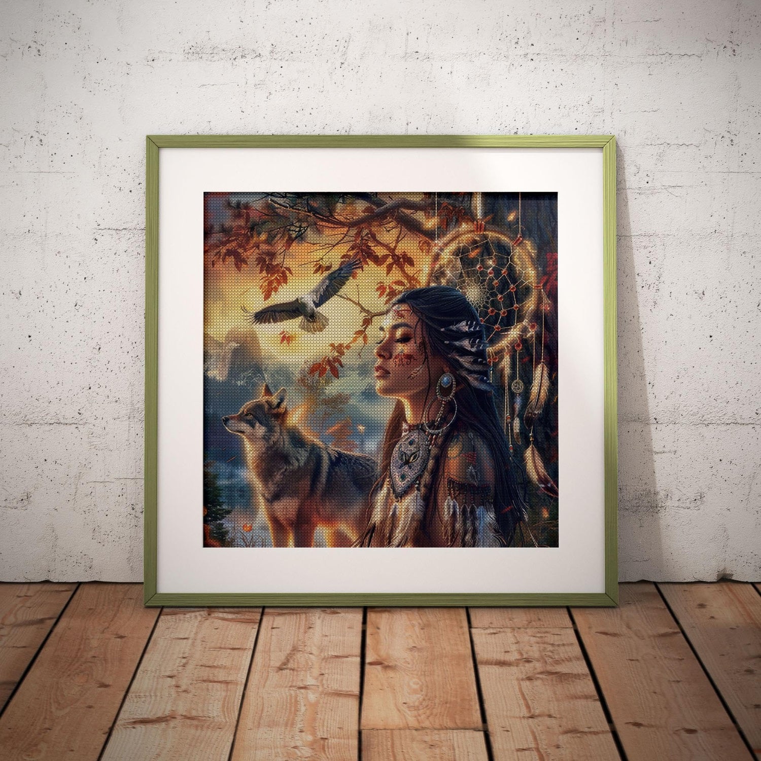Generic American Native Indian Girl and Wolf DIY 5D Diamond Paint Kits for Adults Round Full Drill Diamond Art Easy for Beginner Gems Cross Stitch Mosaic Craft for Home Decor 14x14inch