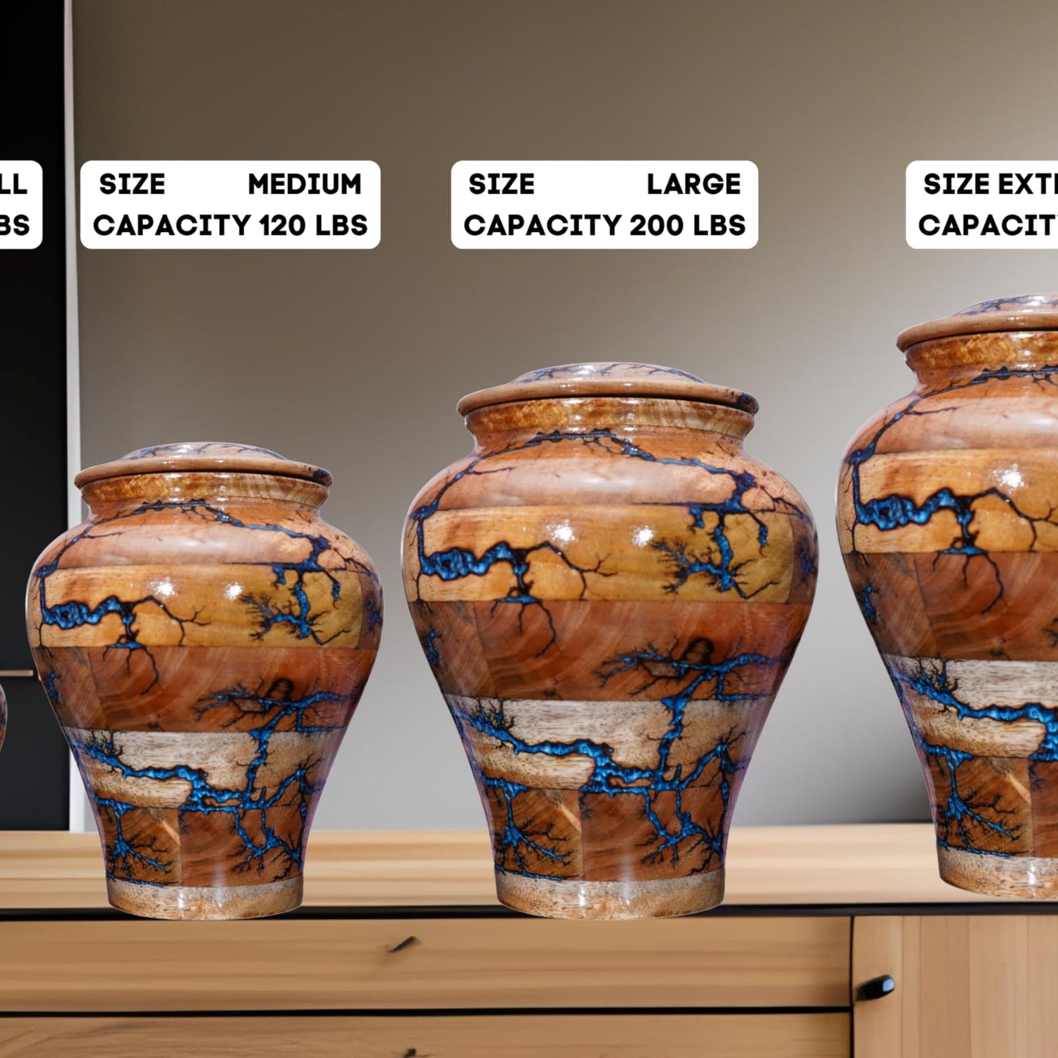 Generic Best Urn for Human Ashes Large Wooden urn for Cremation Adult urn Box for Ashes Personalized Wooden urn Burial urn for Funeral Wood Box (Large 200 lbs), Blue Resin, blueresin-01