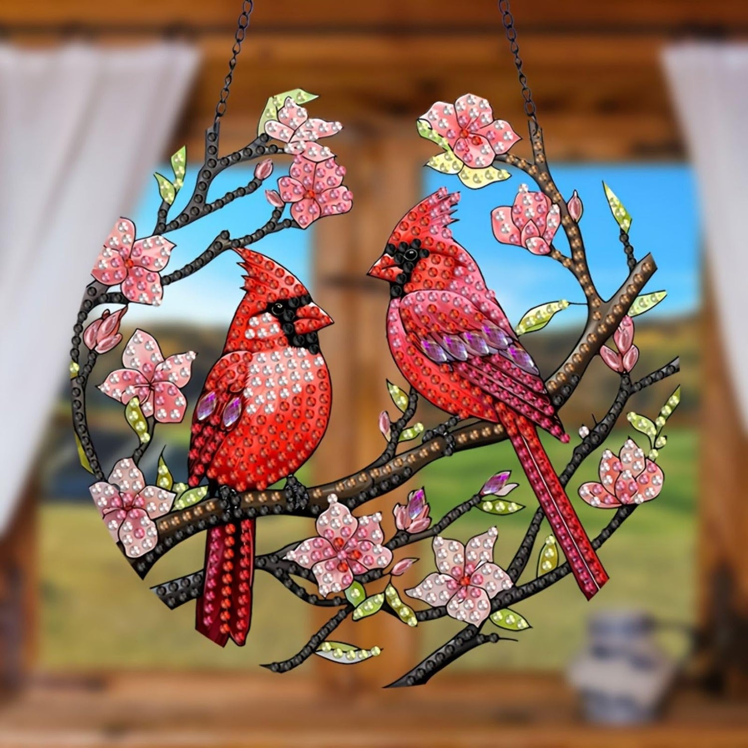 Generic DIY Hanging Diamond Pendant Special Shaped Crystal Diamond Art Painting Ornament Single Sided for Window Home Garden Wall Door Decor-Cardinal