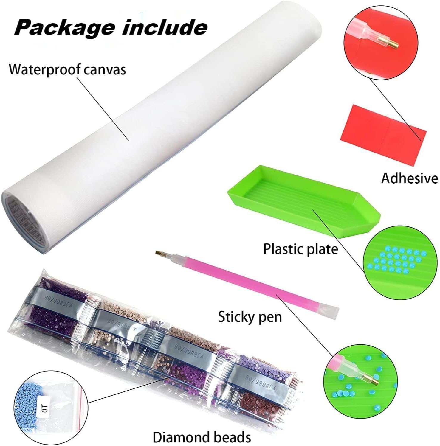 - 2.【HD Printing Canvas】The printing oil canvas is high clear printing,the symbols is easy to read.The pattern itself has a hot melt adhesive background and plastic protective film so the diamonds won't fall down once they're pressed onto the canvas.It is light in texture,moderate in brightness,rich in color.