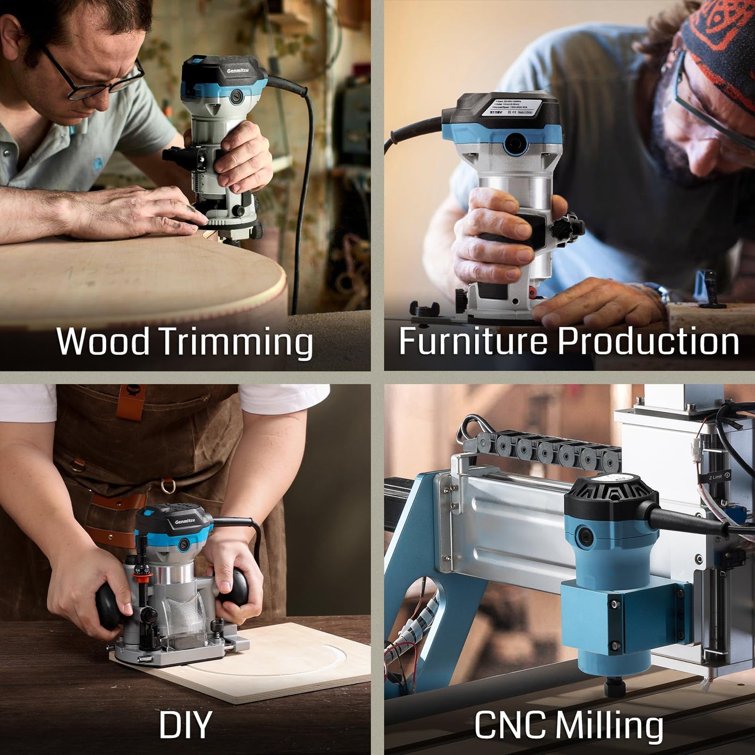 Details: Genmitsu 1.25 HP 65mm Diameter Palm Trimmer Router, Compact Router Wood Tool With Fixed Base, 6 Variable Speeds 10000-30000 R/MIN, with 1/4“ Collet, Perfect for CNC Woodworking & DIY Project