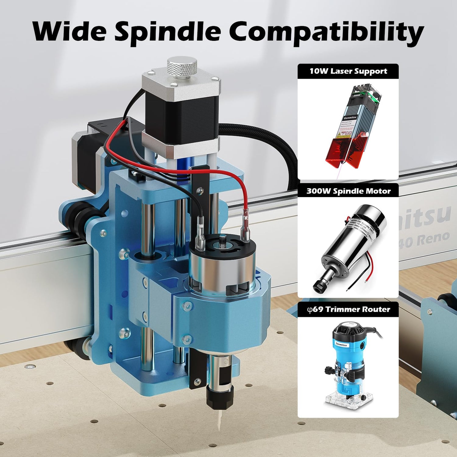 - Simple Setup, Expanded Functionality: Get started quickly with the Genmitsu 4040 Reno's easy modular setup and tough metal build. It offers a good-sized workspace of 400 x 400 x 76mm, perfect for all kinds of woodworking projects. Whether you're a beginner or a DIY enthusiast, its solid aluminum parts and strong motor make it a reliable choice for your workshop.