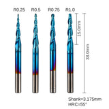 Genmitsu 4pcs 2-Flute Tapered Ball Nose End Mills Tungsten Carbide Cutter with Nano Blue Coat, R0.25-1.0, 1/8” Shank, TB04A