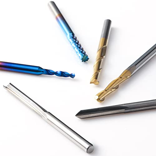 - Rich Sizes for Choose: 2-Flute Flat Nose & Ball Nose End Mills, 2-Flute Straight Router Bits, and Nano Blue Coating End Mills -- Cutting Diameter: (1-3.175mm). PCB Drill Bits -- Cutting Diameter: (1.1-2.0mm).