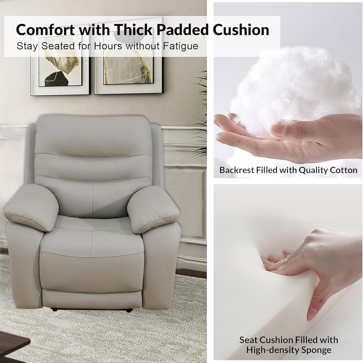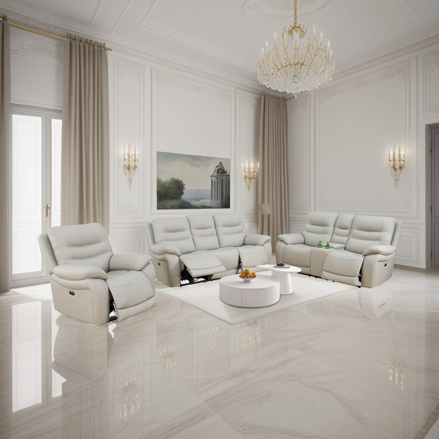 Genuine Leather Recliner Couch Set, Power Reclining Sofa Set 3 Pieces Top Grain Leather Sofa with Built in USB Port for Living Room(Light Grey) (Sofa+Loveseat+Chair)
