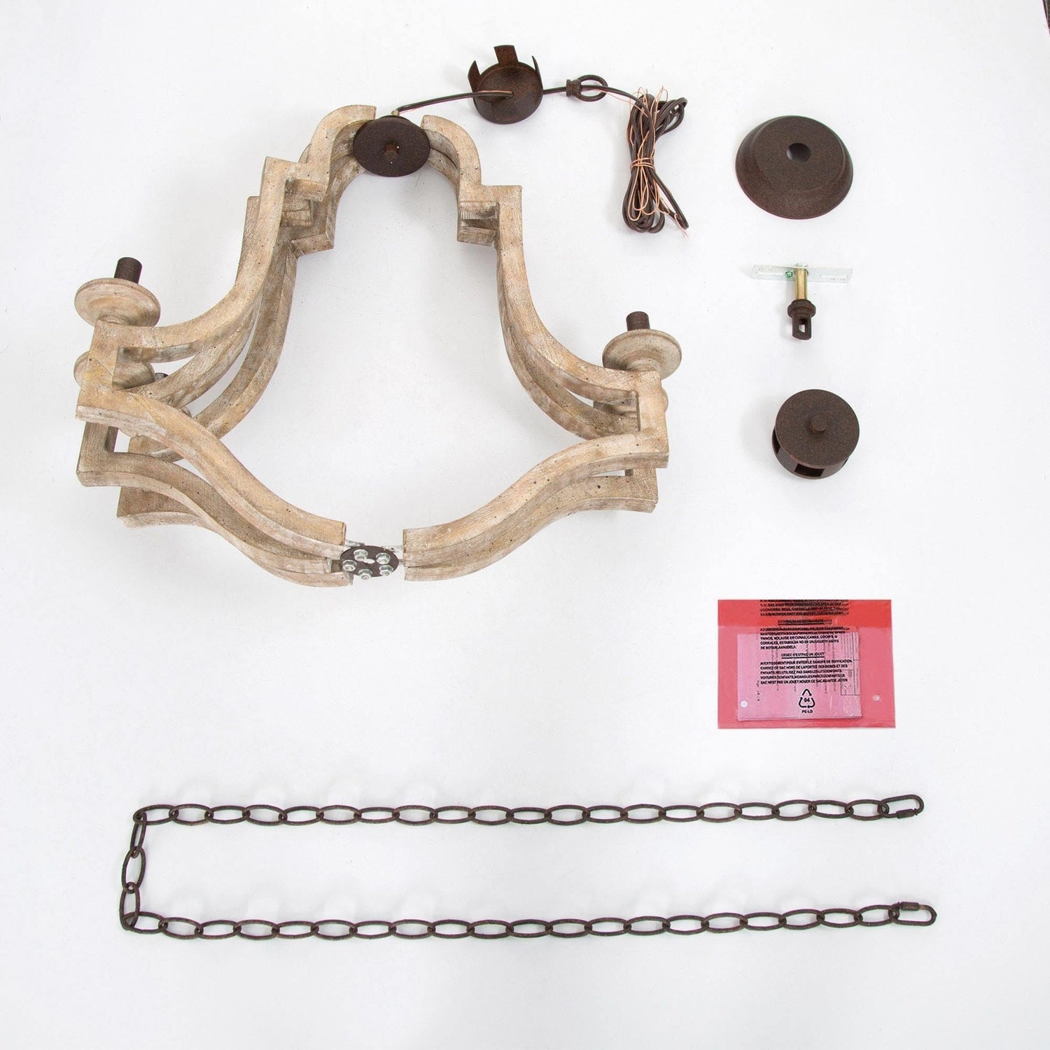 - Crafted to Captivate: The artful union of the wooden frame and rusted iron lamp holders not only lends an air of sophistication but also guarantees unwavering stability. As light dances through the room, it carries with it the charm of bygone eras. The vintage aesthetic of this chandelier transcends time, becoming a focal point that seamlessly integrates with your interior décor.