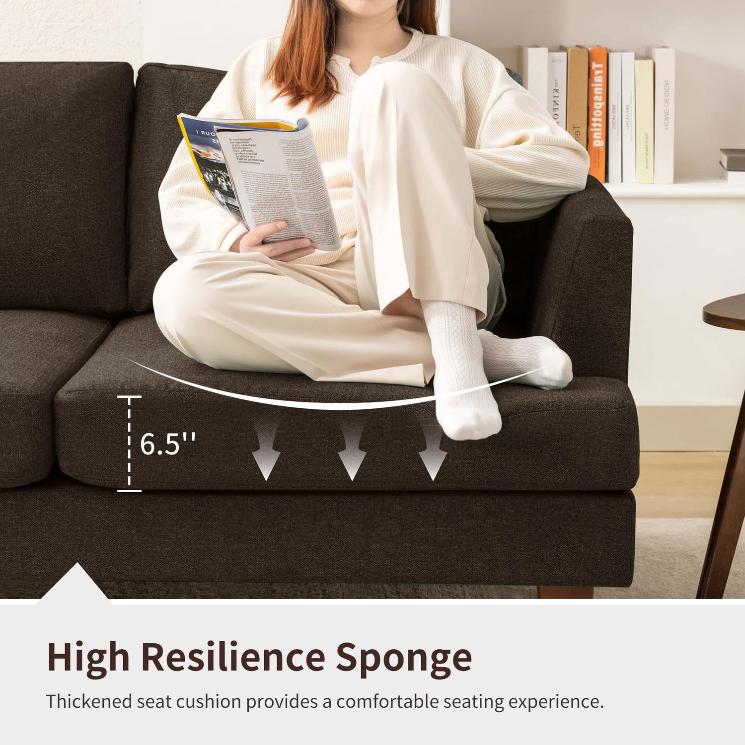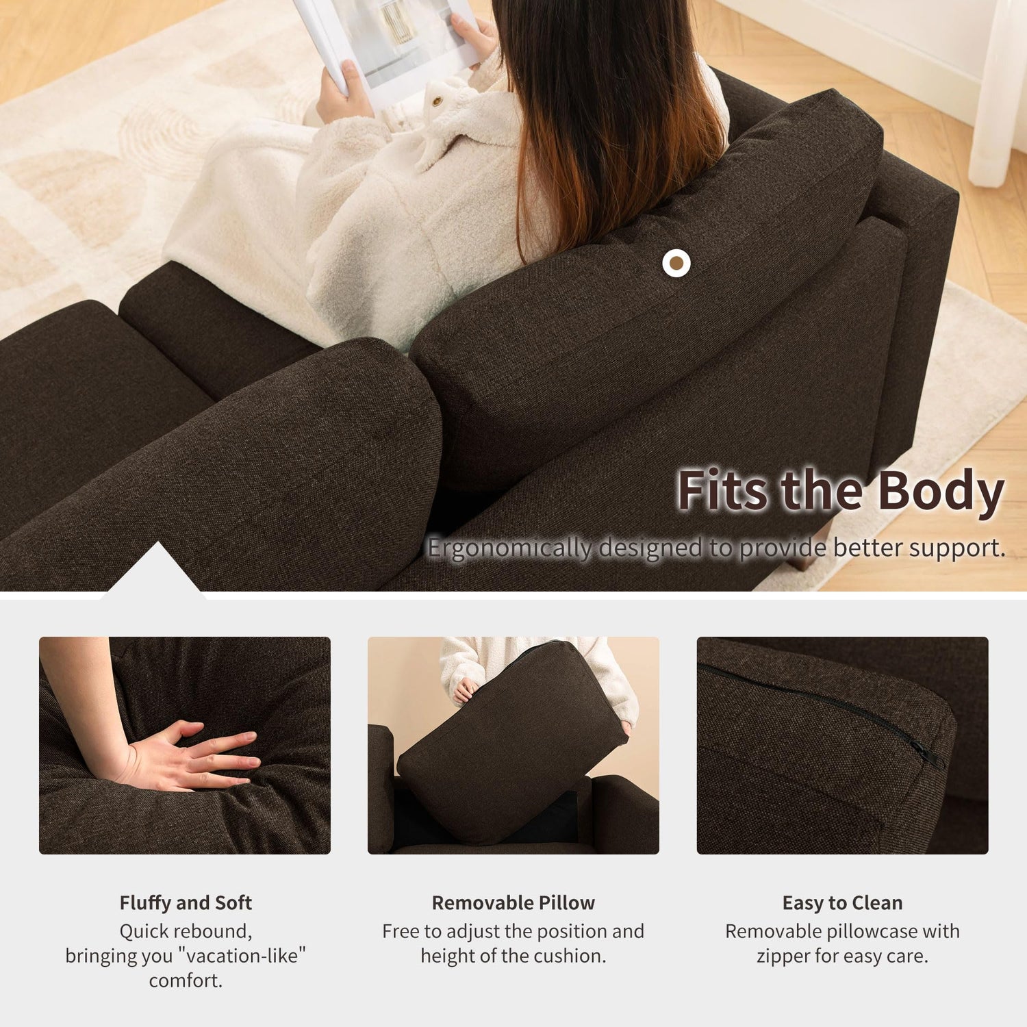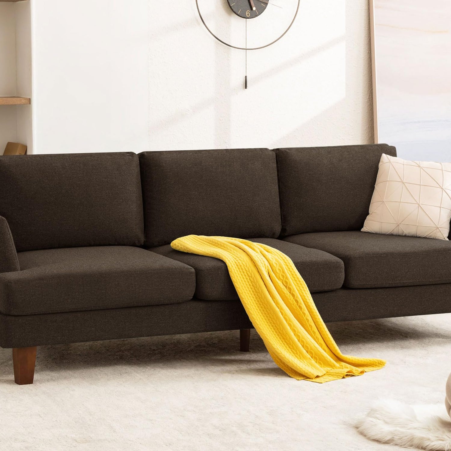 - Sturdy Construction: The sofa is designed with a sturdy hardwood frame and solid wood legs, ensuring stability and enhanced safety. Moreover, it can withstand a weight of up to 750 pounds, allowing you to enjoy comfort while feeling secure.