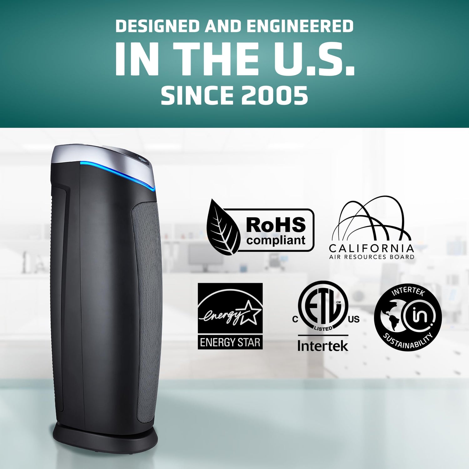 GermGuardian 5-In-1 HEPA Air Purifier for Home, Large Rooms Up To 915 Sq. Ft. with HEPA Pet Air Filter, UV-C Light & Odor Reduction, AC5250PT, 28" Tower, Black