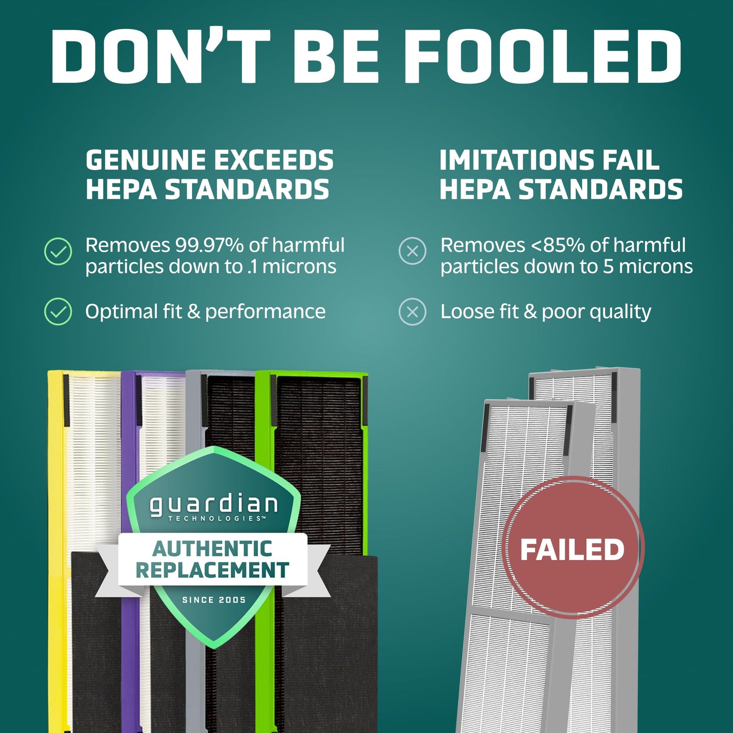 - The GermGuardian Difference: Genuine air purifier HEPA filters offer a certified fit and maximum filtration, unlike off-brand filters which frequently fail HEPA testing standards, fit incorrectly, reduce efficacy, and may damage your air purifier