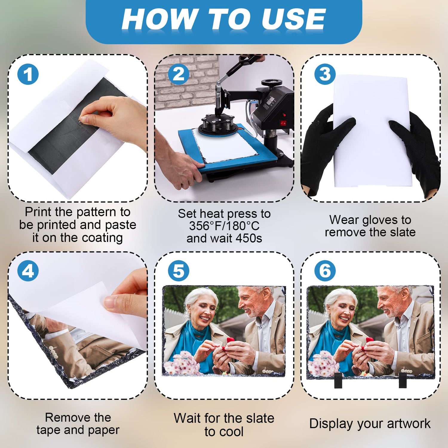 - Easy to Apply: our rock slate sublimation blank is easy to use; First you need to use heat transfer tapes to stick the printed image to the sublimation coating layer of the frame, then set the heat press machine to 360 degrees Fahrenheit/ 182 degrees Celsius, press and wait 450-600 seconds, finally put on gloves and take out the frame, then tear off the tape and the paper to get your artwork