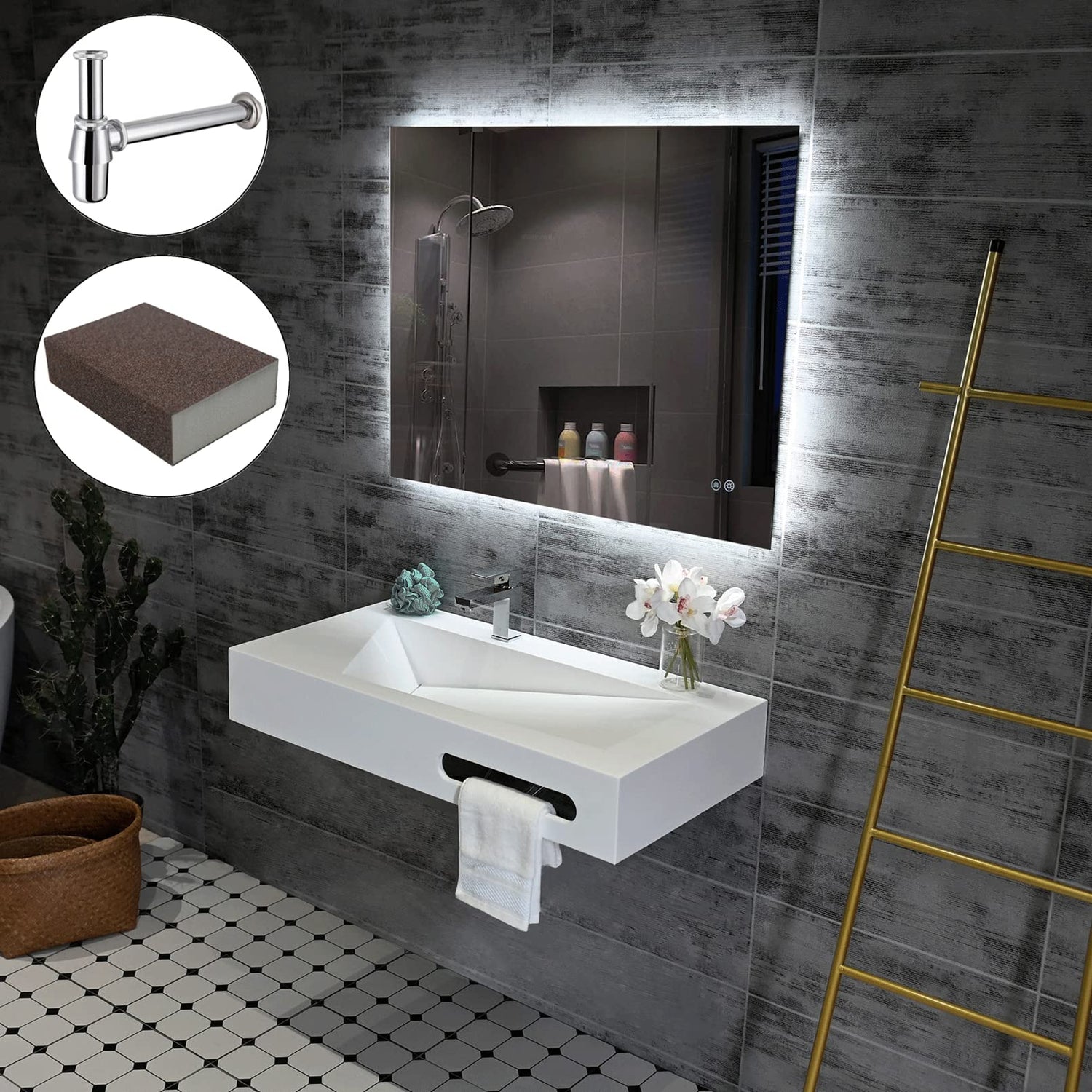 GESIPOR 36"x19" Wall Mount Bathroom Vanity with Sink Stone Resin Floating Vanity Sink Rectangular Vessel Sinks for Bathroom White Trough (Mirror Not Included)