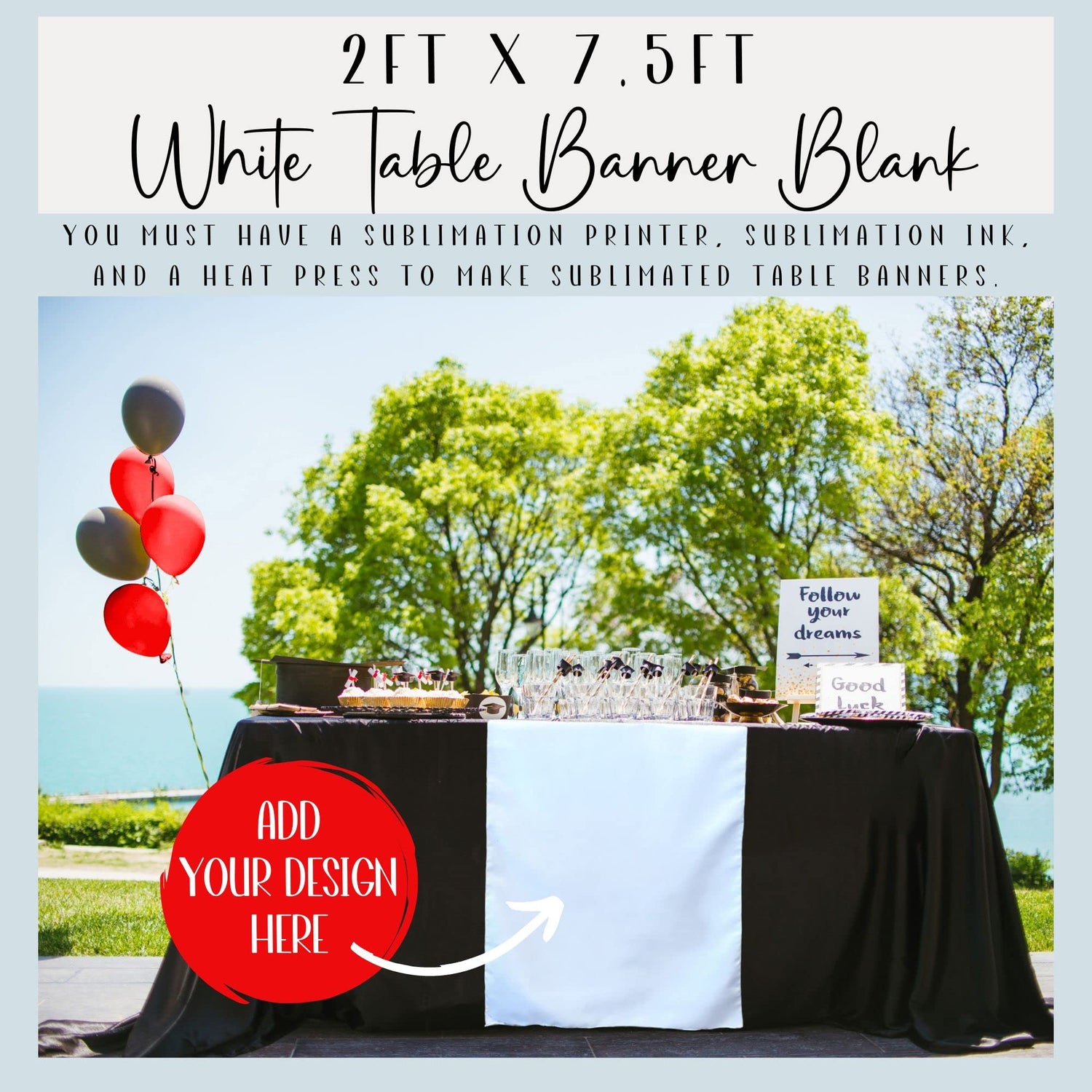 GET SNAPPIN White Table Banner, Table Runner, Sublimation Blanks, 100% Polyester Blank for Sublimation Printer, Decorations for Birthday Wedding Baby Shower Gender Reveal Tablecloth, 2ft x 7.5ft, 1pc