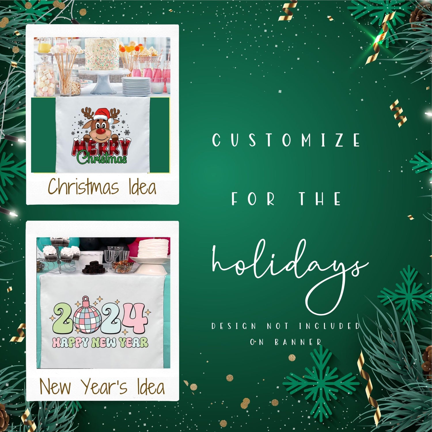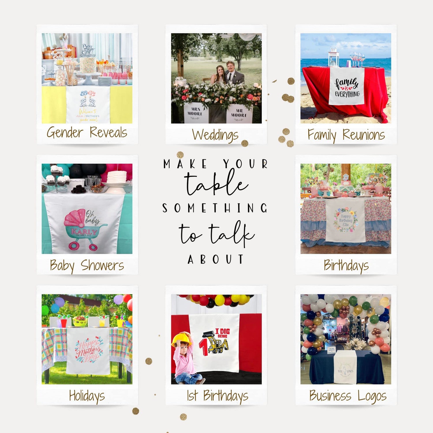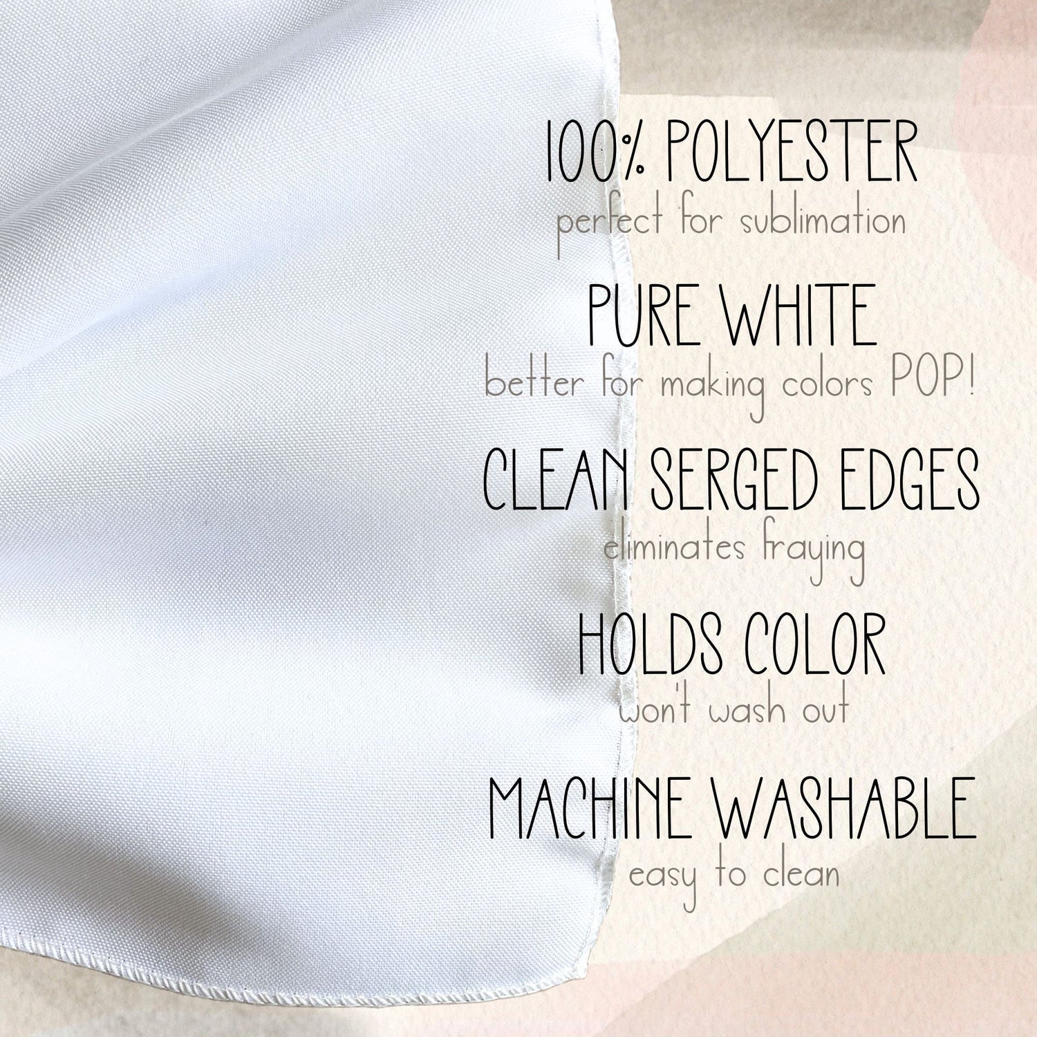 Details: Stand out at your next party when creating a unique table banner customized for your event. You will not be disappointed with these high quality 180gms polyester table banners. The polyester fabric is perfect for sublimating to produce the most vibrant colors that will last. These affordable banners can be used for any occasion. Sublimate, screen print, or leave blank for beautiful table decor. Find us on IG @getsnappin or more ideas on how to use these fun table banners.