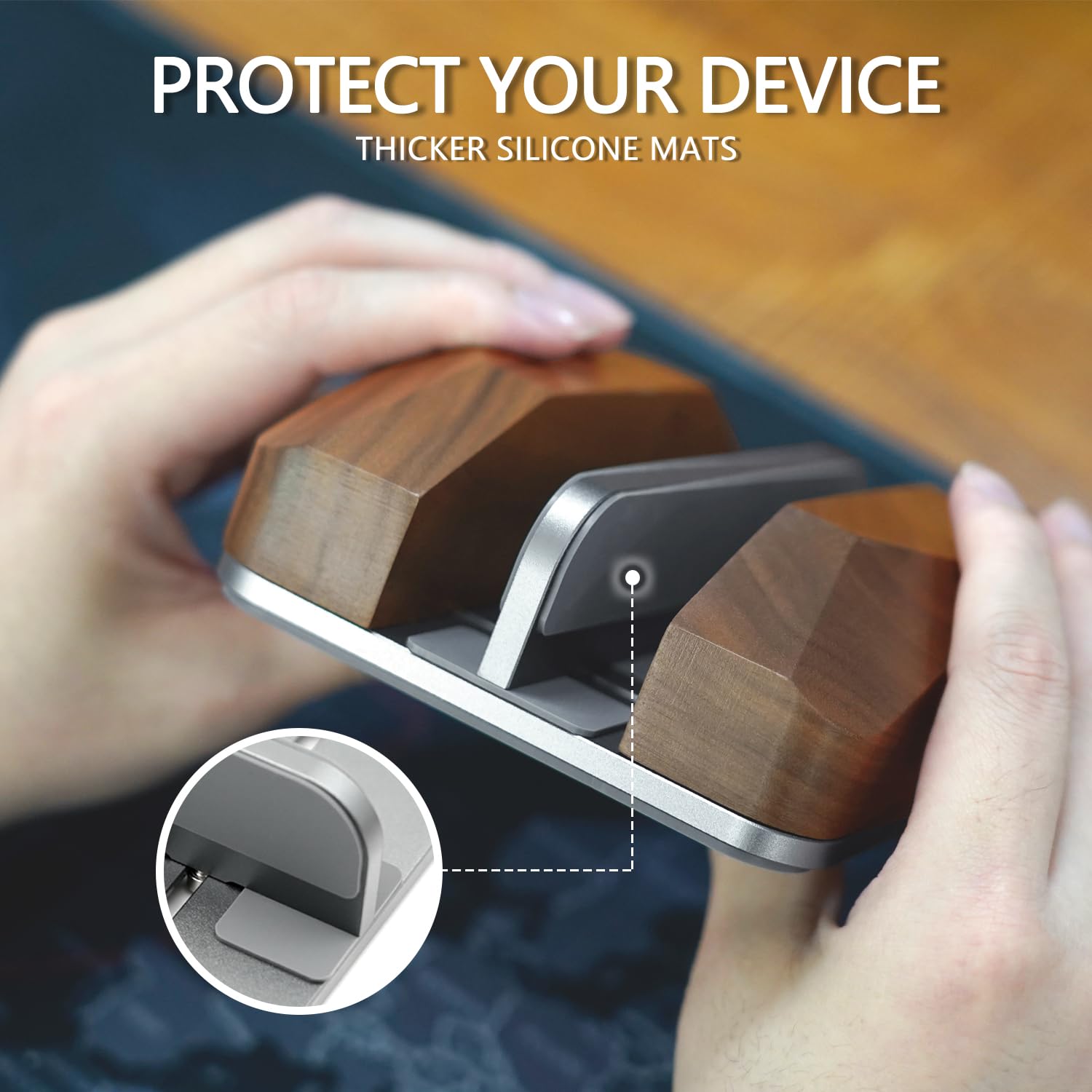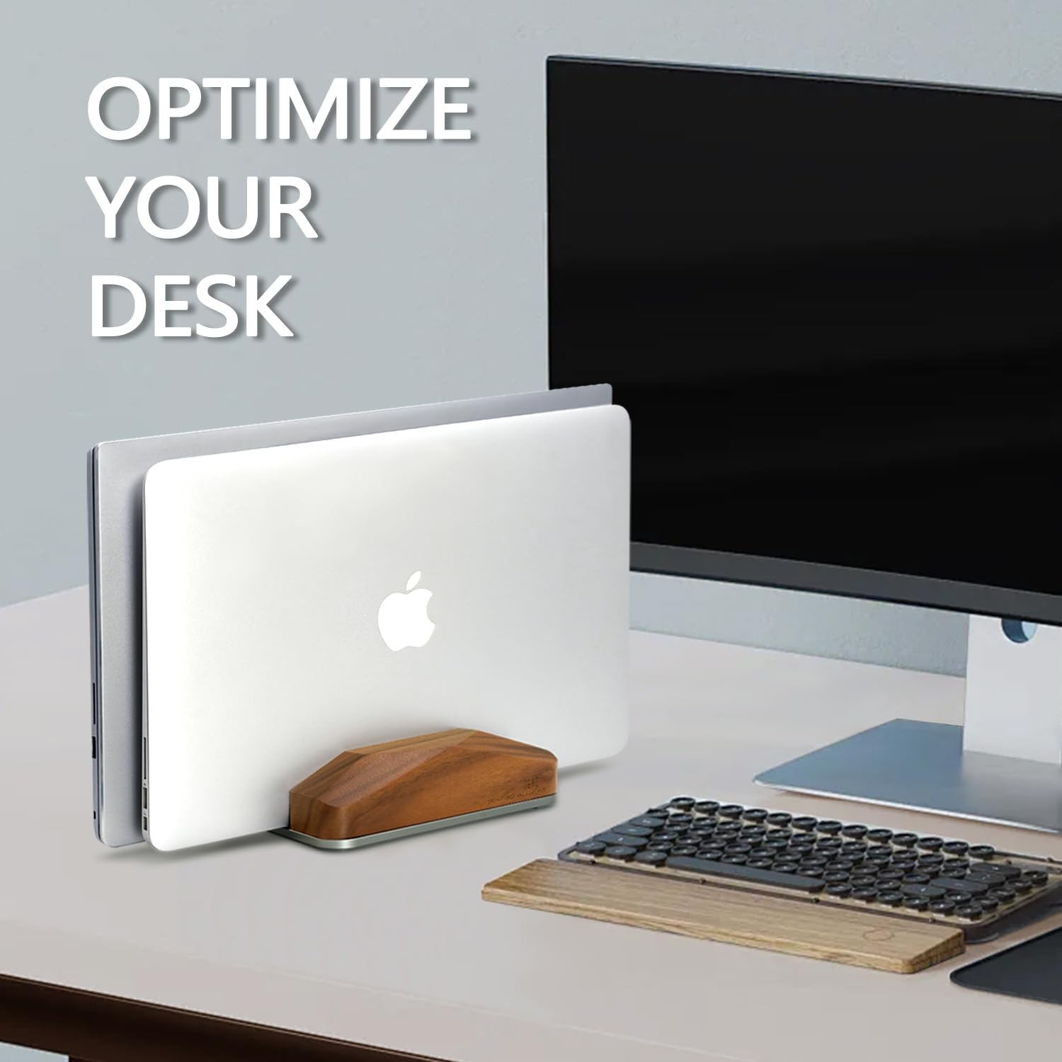 - ๐๐ฉ๐ญ๐ข๐ฆ๐ข๐ณ๐ ๐๐๐ฌ๐ค๐ญ๐จ๐ฉ ๐๐ฉ๐๐๐: Maximize your workspace with a stylish black walnut wooden vertical stand for laptops and MacBooks. This stand provides a secure and elegant cradle for your device, freeing up valuable desk space while protecting against spills.