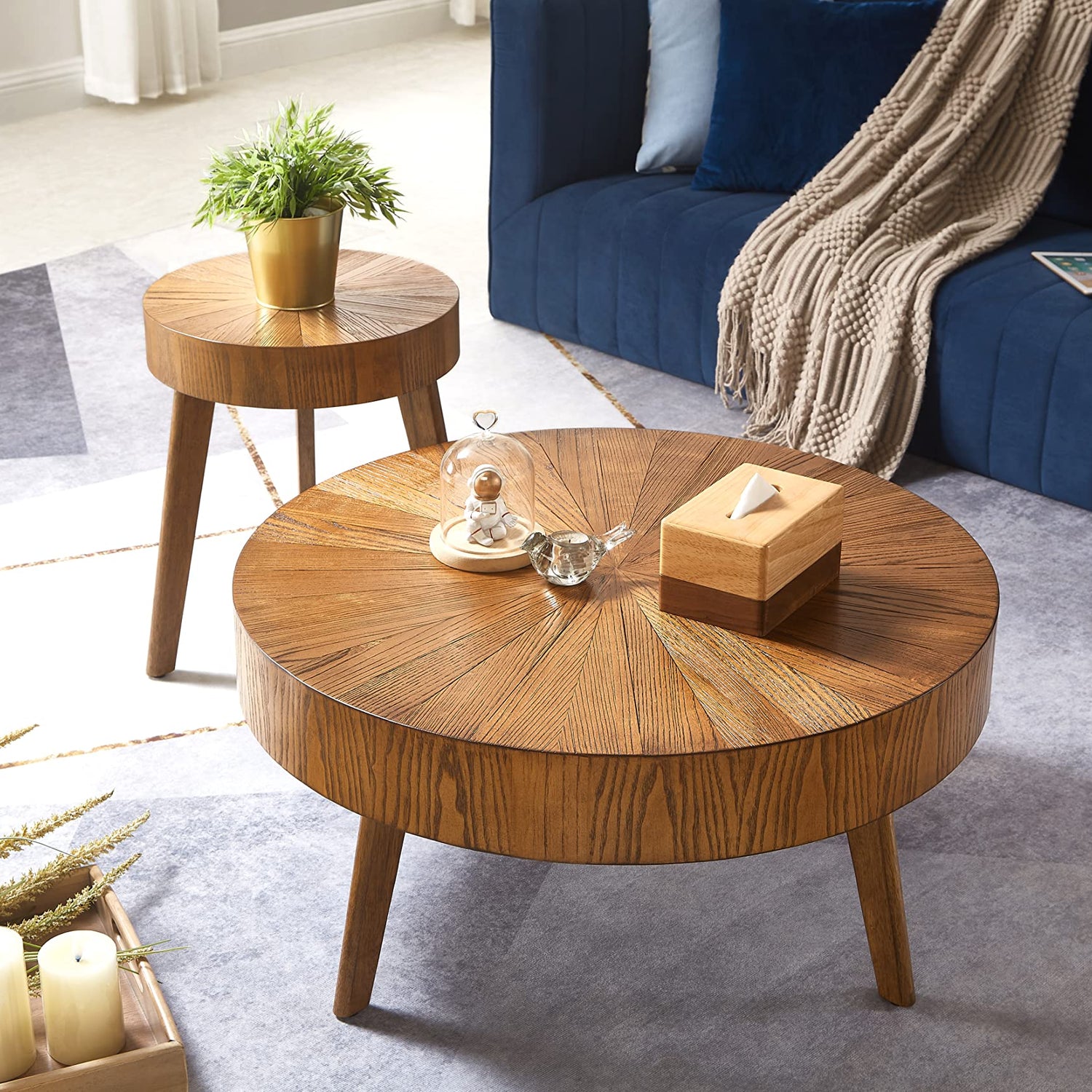 - đ¤ăSolid Wood Coffee Talbe for Living RoomăCrafted from high-quality solid wood, this rustic round coffee table exudes a timeless charm and exceptional durability. The natural grain patterns and rich texture of the wood make each table unique and visually appealing. Its compact size and rounded shape make it an ideal choice for small spaces, while adding a touch of sophistication to larger rooms.