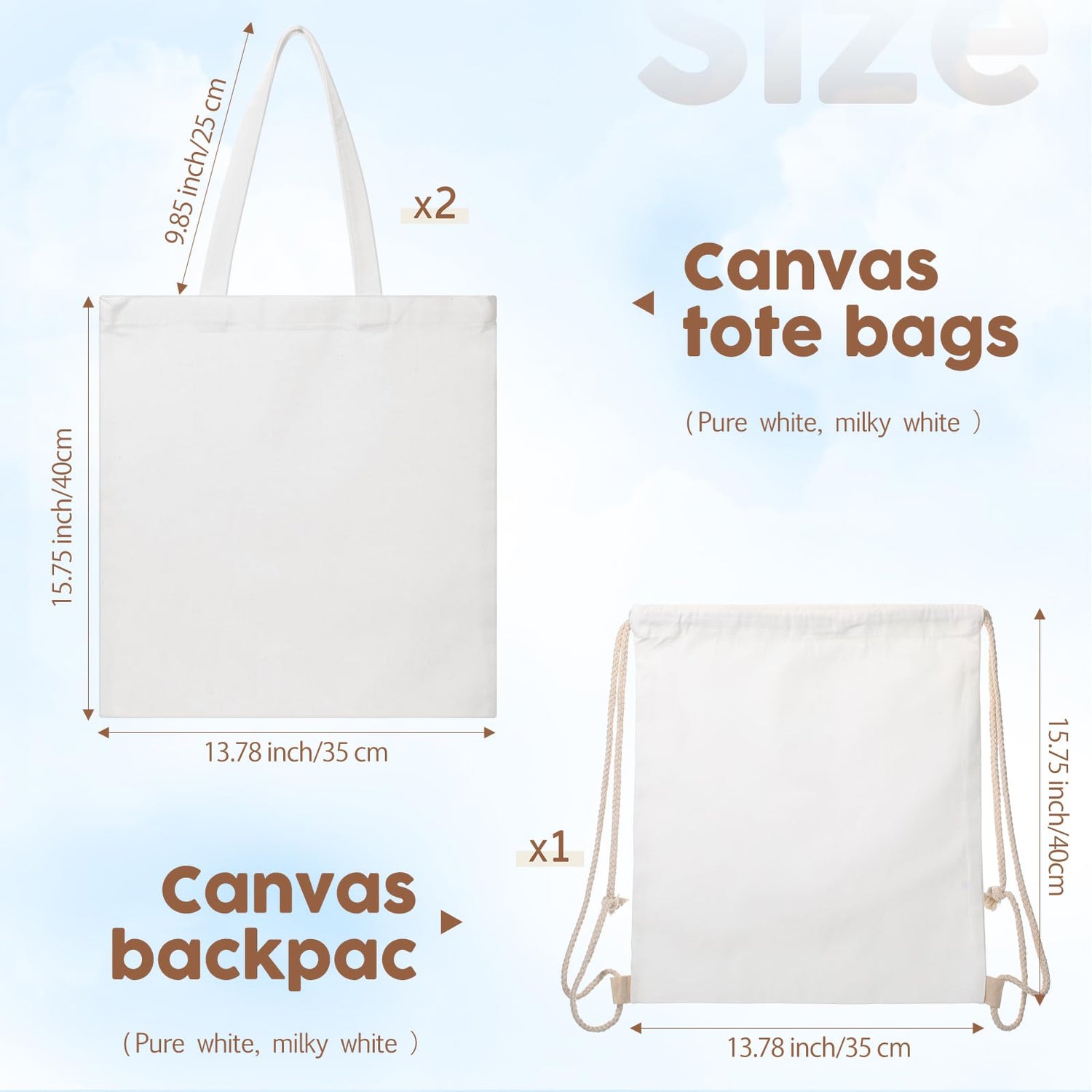 - Package Information: 2 plain white T shirts, 5XL and 4XL, the larger one is partially bleached to make it easier to distinguish, and the smaller one is milky white; 2 canvas bags, about 15.75 x 13.78 inches/ 40 x 35 cm, 2 blank fisherman hats, about 22.83 inches/ 58 cm to 23.62 inches/ 60 cm, 1 pair of socks, 2 white scrunchies, 1 pure white backpack, about 13.78 x 15.75 inches/ 35 x 40 cm, totally 11 pieces