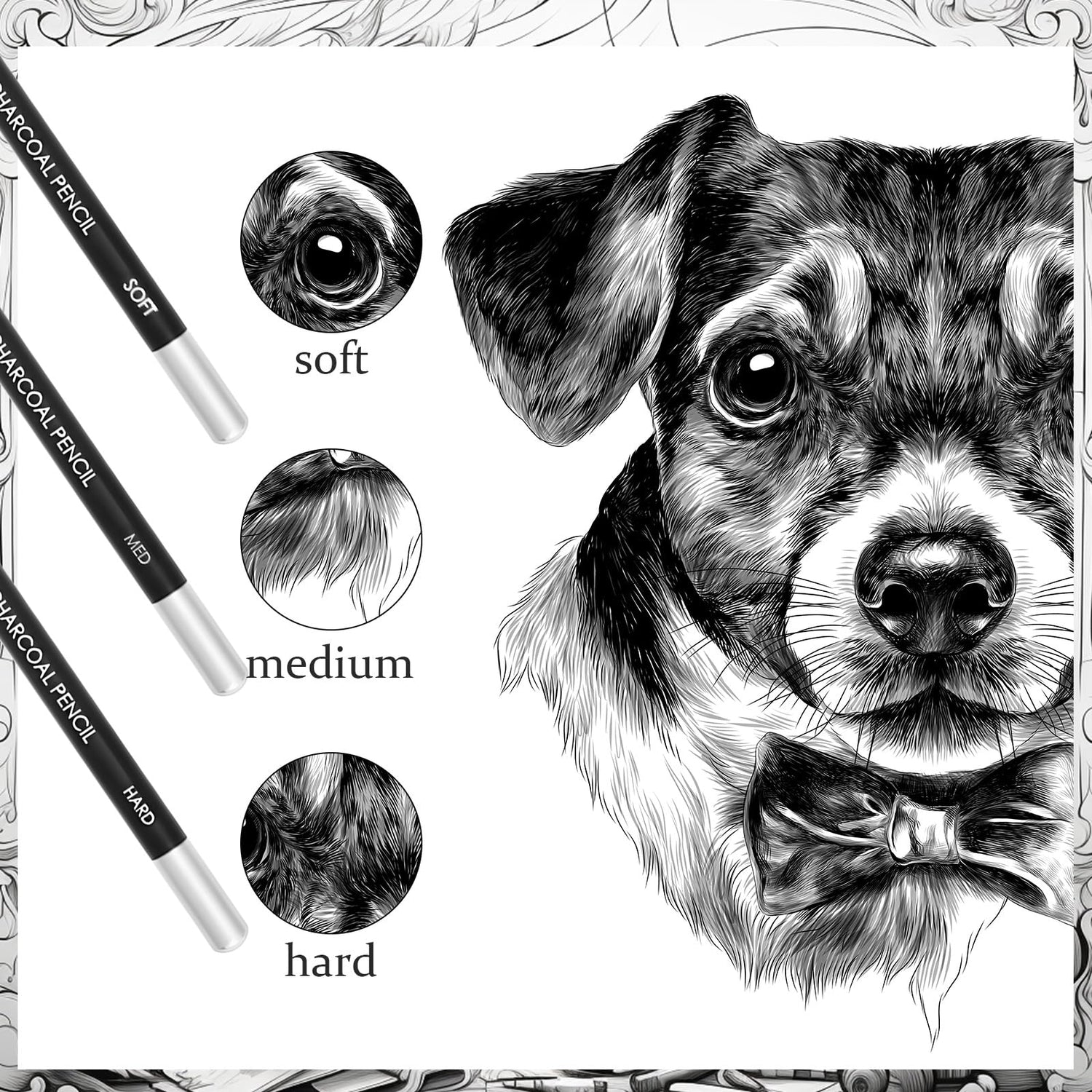- Professional and Versatile: these shading pencils can be applied at an inclined angle for broad strokes or can utilize the sharp tip for detailed lining; Soft charcoal pencil is suitable for big color paving as a base, while medium and hard charcoal pencils excel in portraying detailed aspects and gray surfaces; The distinct levels provide more choices, making them an optimal choice for character, portrait, and still life drawings