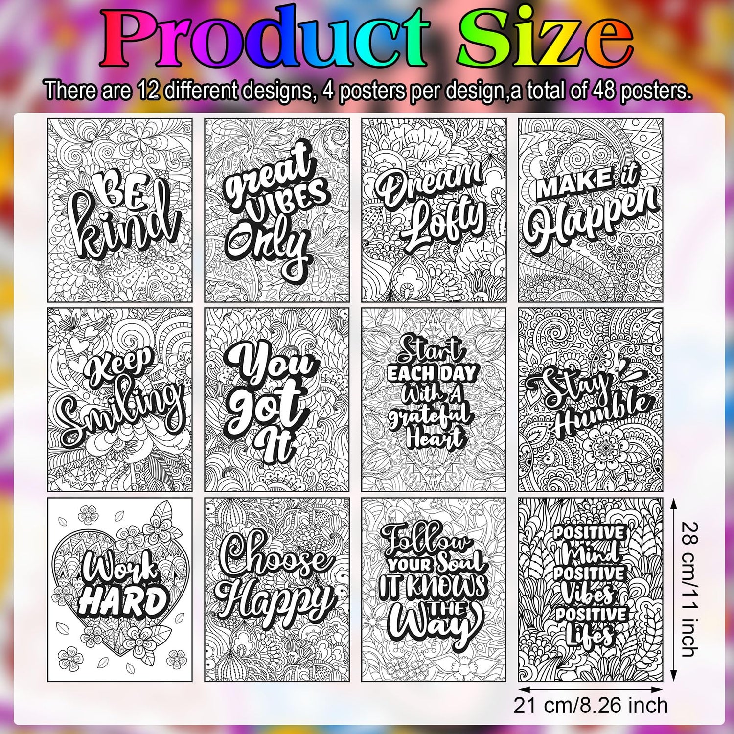 - Package Content: you will get 48 mandala inspirational coloring posters with 12 different design patterns, 4 sheets for each style, sufficient quantity and rich styles can meet your painting and decoration needs; Each poster size is 11 x 8.26 inches/ 28 x 21 cm, large enough to attract attention