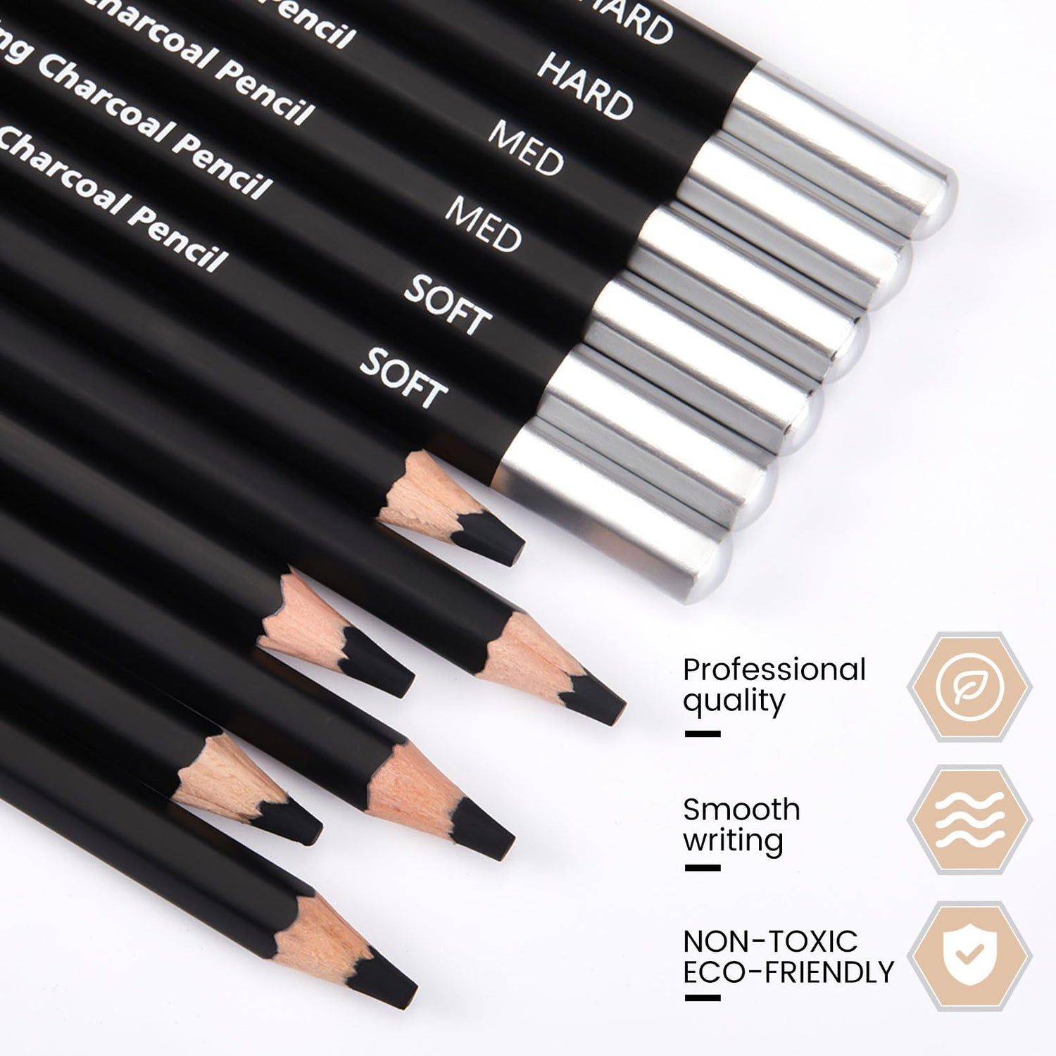 - Warm Tips: due to potential long distance shipping, the inner core of these charcoal pencils for drawing might break; Be gentle while sharpening to avoid any breakage and ensure a longer lifespan of your pencils; The products may come with differnt package patterns, but will not affect the use of the charcoal pencils