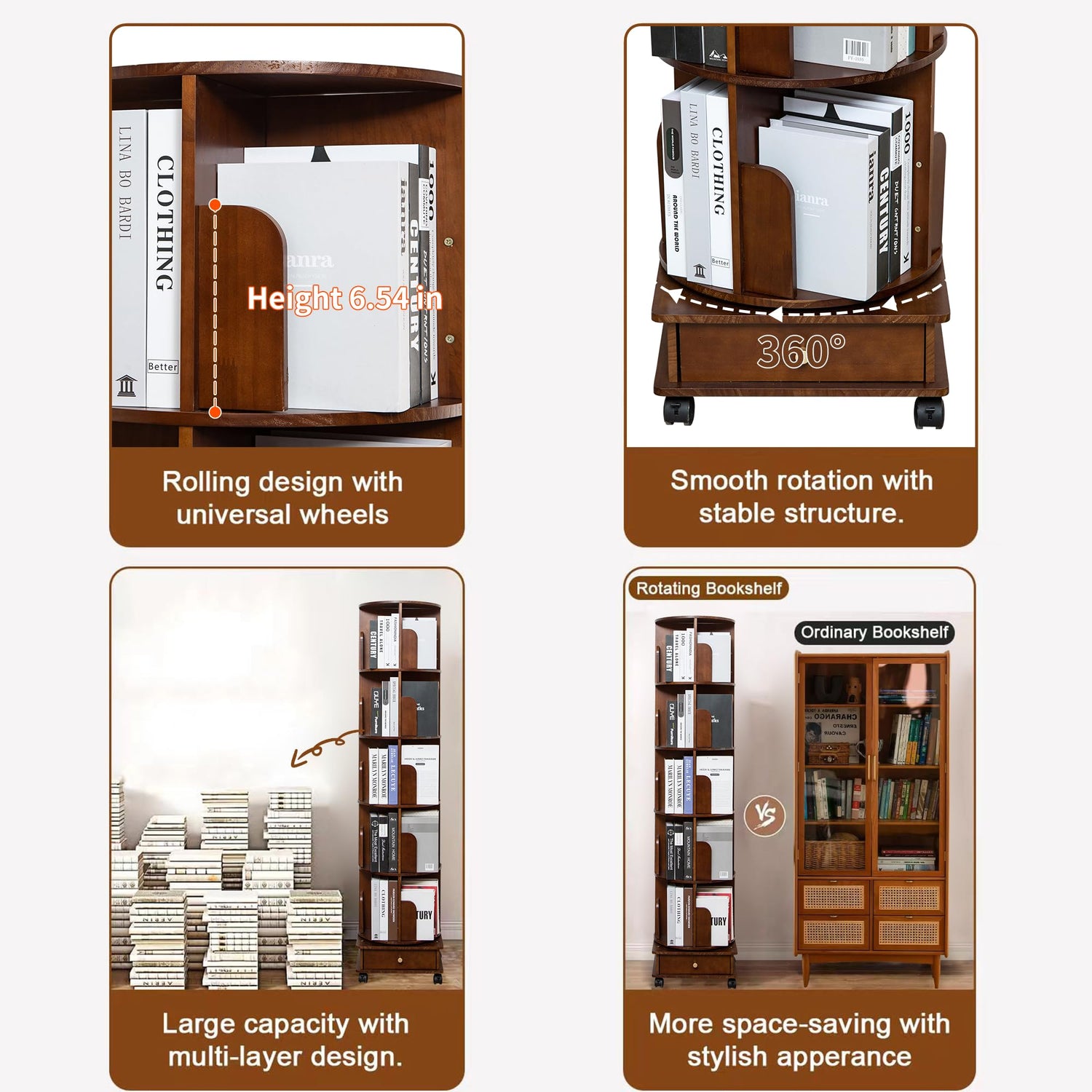 Introducing the Solid Wood 360° Rotating Bookshelf Tower by GHBRHBJ, an exquisite addition to any space that combines functionality with elegance. Crafted from high-quality solid wood, this bookshelf showcases the natural beauty of walnut, with its warm tones and unique grain patterns creating a stunning focal point that enhances your home or office décor.